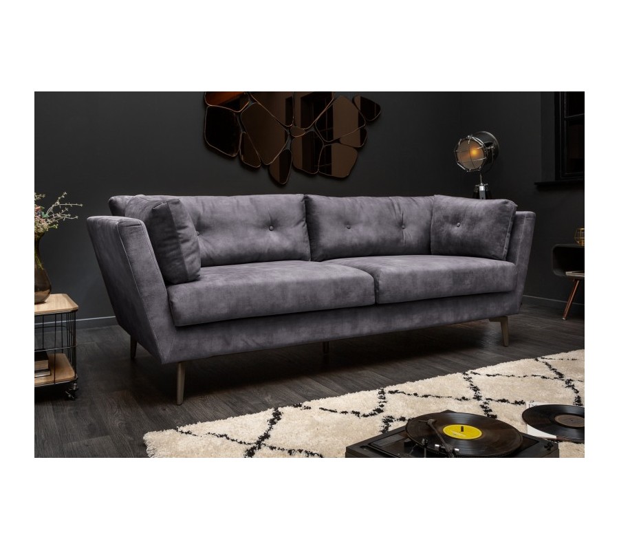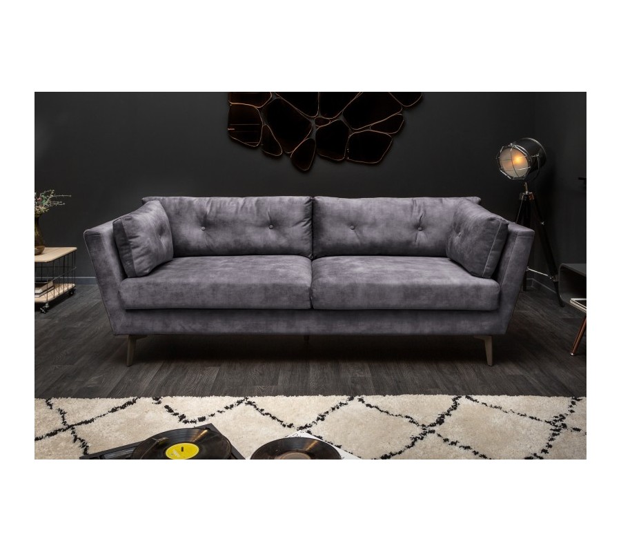 Nadčasový dizajn sivej zamatovej sedačky Auxerre vnesie do každého interiéru moderného ducha s prvkami elegancie. Vďaka kombinácii s vysokými úzkymi nožičkami pôsobí odľahčene a nezaťažuje ani menší priestor. Kovové nohy sedačky s najnovším dizajnom v tlmených matných odtieňoch vytvárajú s jemným odleskom zamatového poťahu harmonický kontrast. Pohodlie počas sedu je zabezpečené pridanými vankúšmi na operadle a v kombinácii s pružinovým jadrom zabezpečuje komfort aj počas dlhého odpočinkového sedu. Rozmer sedačky je dostatočný pre pohodlné usadenie troch až štyroch osôb. Štýlová sedačka Auxerre sa stane dokonalým doplnením vašich moderných domácností či miestom na odpočinok v obľúbenom podniku či luxusnej čakárni.