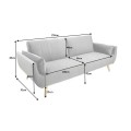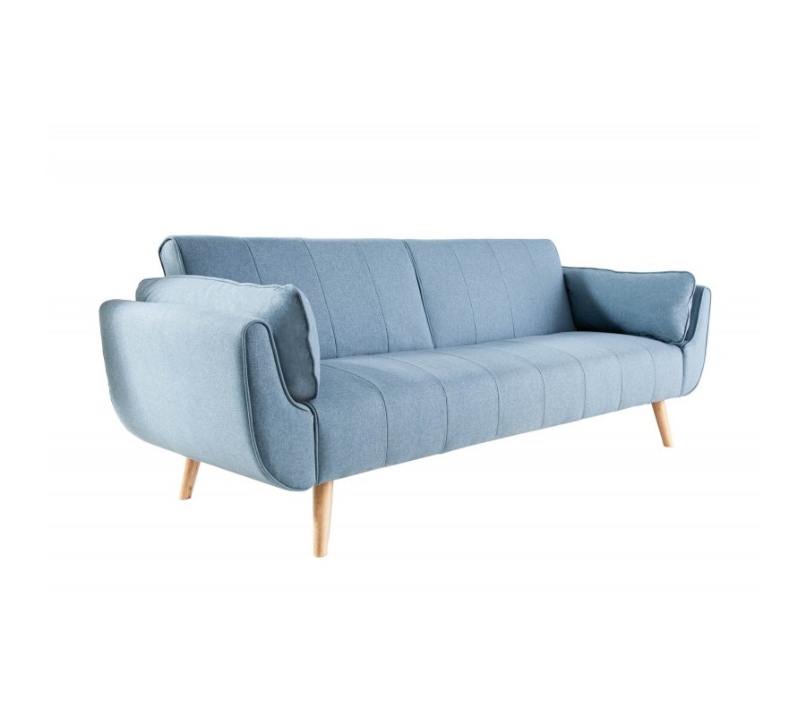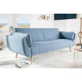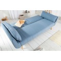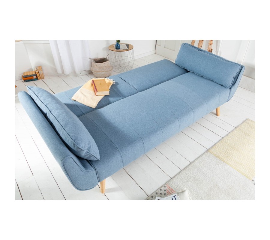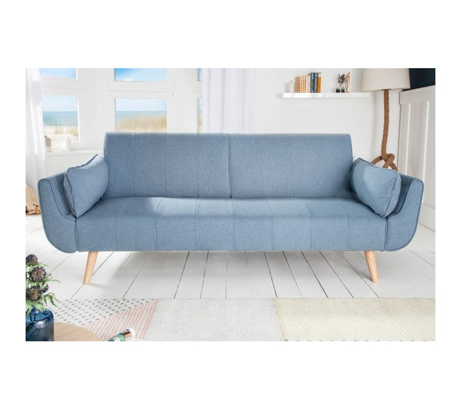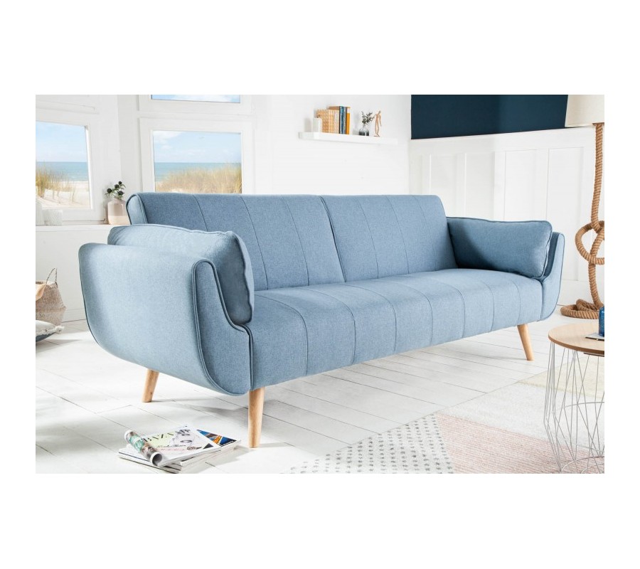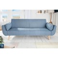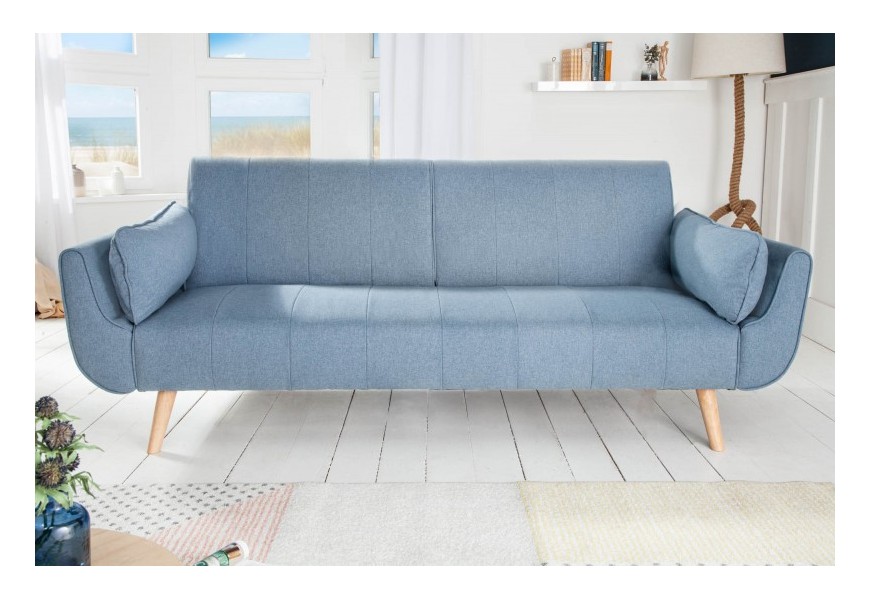 Retro modrá rozkladacia čalúnená sedačka Domingo s drevenými nohami 215cm