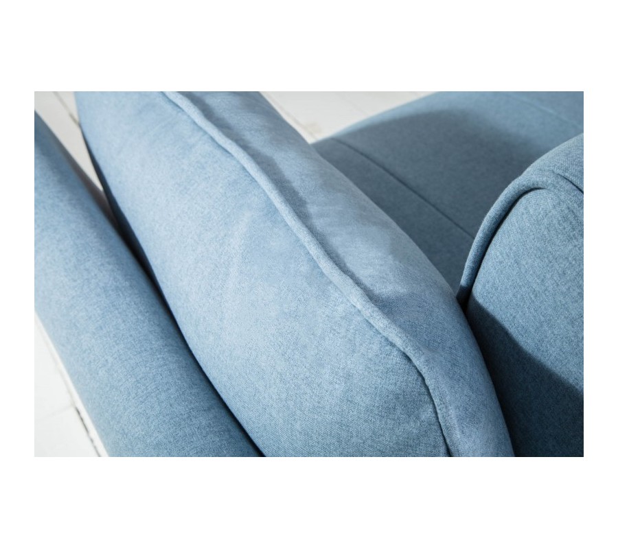 Jedinečná čalúnená sedačka Domingo sa stane dokonalým doplnením vašich moderných interiérov, ktoré sú plné sviežich prvkov v obľúbenom štýle retro. Sedačka je čalúnená v bledom modrom poťahu s príjemnou štruktúrou, ktorý sa opakuje aj na dvoch praktických vankúšoch umiestnených po bokoch opierok na ruky. Chrbát sedačky sa dá jednoducho sklápať a vytvoriť tak priestor na príležitostný odpočinok vašich hostí. Čalúnená časť sedačky je doplnená vysokými drevenými nožičkami, ktoré dodávajú celkovému dizajnu šmrnc s nádychom retro štýlu. Rozmer sedačky umožňuje pohodlné usadenie štyroch osôb. Sedaciu plochu môžete rozšíriť pridaním pohodlného kresla či praktického taburetu, pri ktorých sa nemusíte báť kombinácii farieb a vzorov. Tento štýlový kúsok z kolekcie Domingo nájdete v našej ponuke v rozličných farebných prevedeniach. Plocha na ležania 180x110cm.