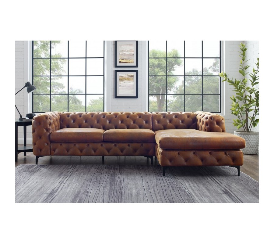 Chesterfield rohová sedačka Modern Barock v antickej hnedej farbe na nožičkách 275