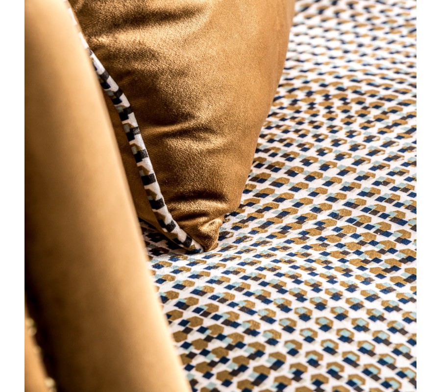 Art-deco luxusná sedačka Brilon v zlatom odtieni so vzorovaným poťahom 233cm