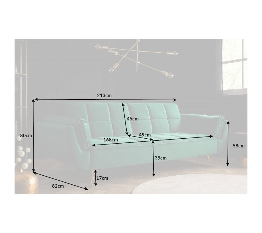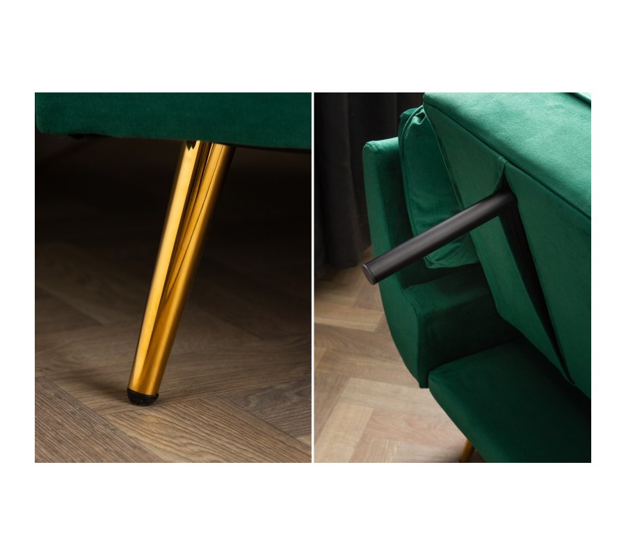 Jedinečná sedačka Rimadea sa vyznačuje svojou výraznou farebnosťou. Smaragdovozelený poťah zo zamatu sa postará nielen o unikátny dizajn sedačky, ale taktiež spríjemní vaše chvíle oddychu. Zlaté nožičky z kovu dotvárajú art-deco efekt, ktorý krásne vynikne v moderne ladených priestoroch. Odporúčame sedačku Rimadeu umiestniť do tmavších interiérov v kombinácii so skleneným či kovovým nábytkom. Na sedačku sa pohodlne usadia štyri osoby.