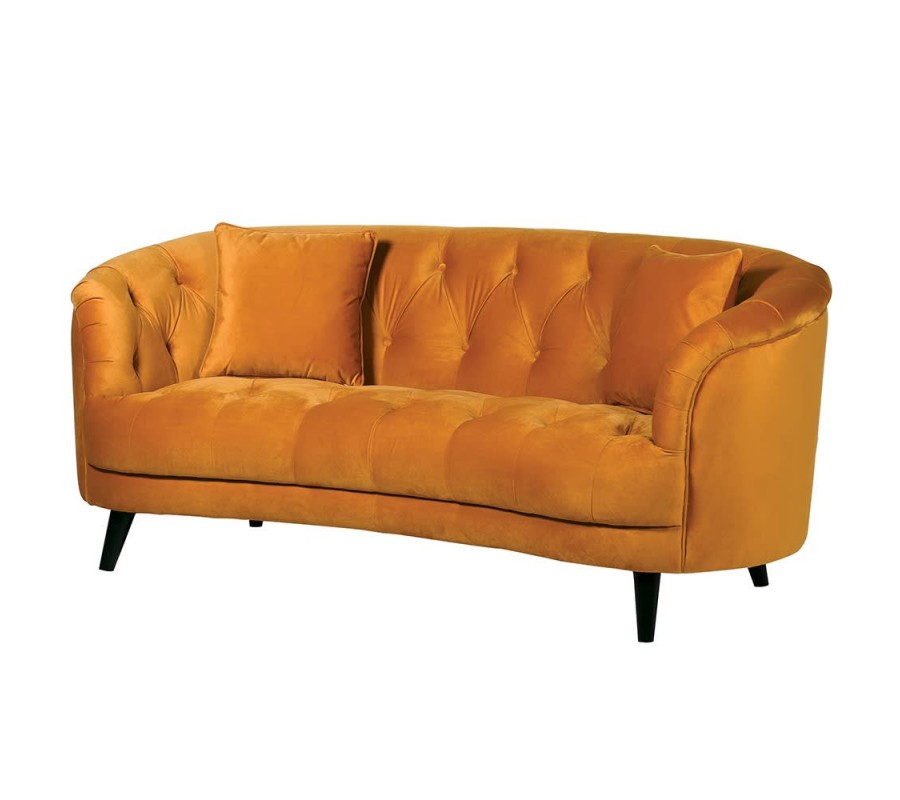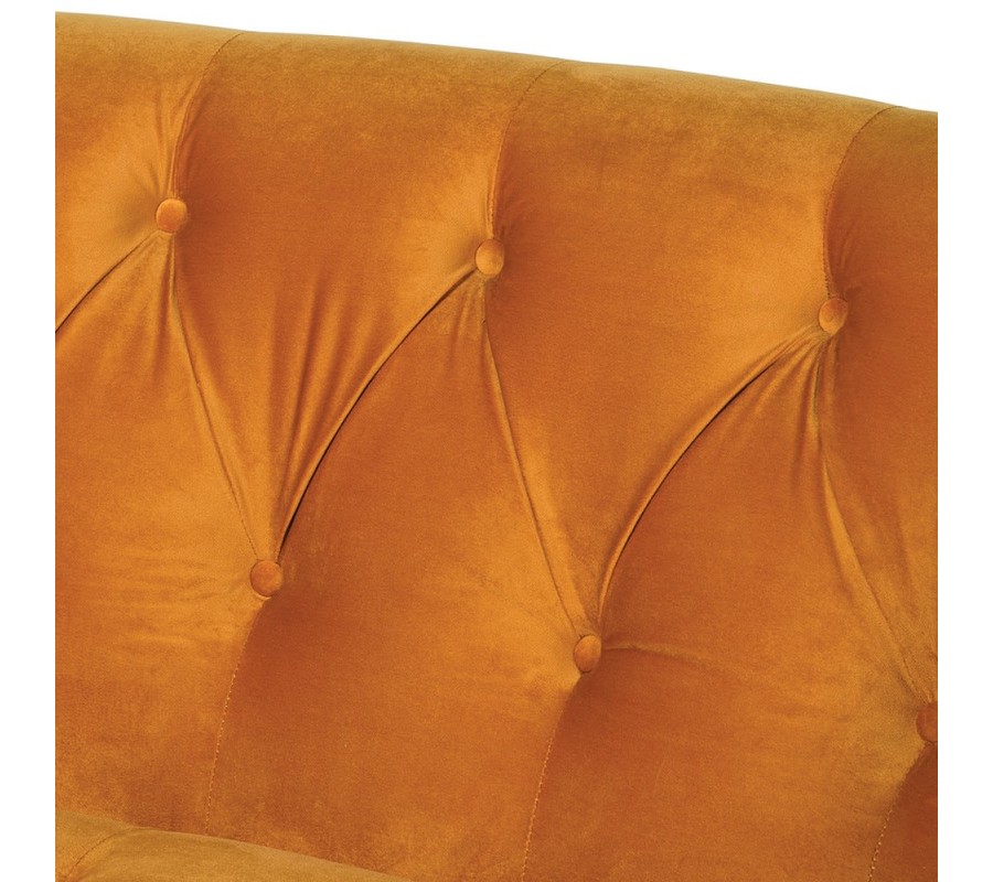Elegantná sedačka Senapa zaručene upúta vašu pozornosť či už svojou farebnou kombináciou, alebo svojimi luxusnými prvkami. Zamatové čalúnenie vo výraznej horčicovej farbe spravia sedačku Senapa priam šperkom vašej obývačky, kde bude zasadená ako dominantný kúsok. Sedačka je postavená na masívnych nožičkách v čiernom farebnom prevedení, čo vytvára zaujímavý farebný kontrast so zamatovým čalúnením. Gombíkové prešívanie sa nachádza na vnútornej strane bočných opierok a chrbtovej opierky, čo dodáva dizajnový vzhľad sedačke. Ak vás farebné prevedenie veľmi nepresvedčilo, tak vás jej bohaté polstrovanie na sedacej časti a dva bedrové vankúše zaručene presvedčia. Vďaka svojim rozmerom a kvalitnému prevedeniu na sedacej a opierkových častiach spolu s príjemným zamatovým čalúnením sedačka Senapa vytvorí príjemné sedenie aspoň trom ľudom. Sedačku Senapa odporúčame kombinovať do tmavých interiérov, s tmavým nábytkom, alebo s nábytkom v art-deco štýle.
