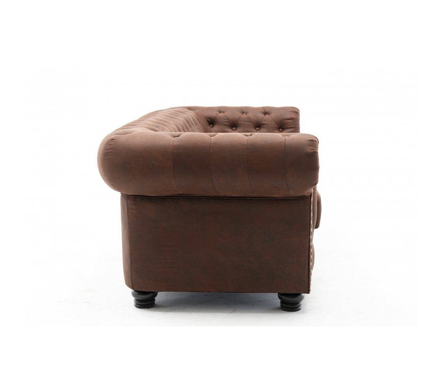 Chesterfield nadčasová hnedá trojsedačka Loungrre s dizajnovým prešívaním 205cm