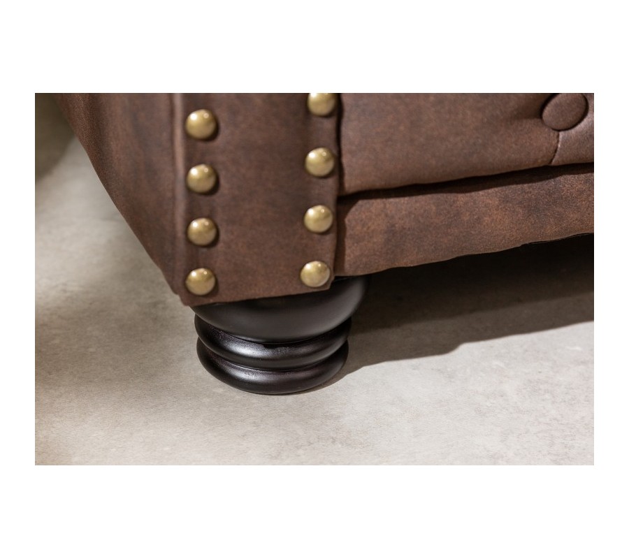 Jedinečná a dizajnová pohovka Loungrre je vyrobená v nadčasovom a nestarnúcom chesterfield štýle, ktorý dokonale zapadne najmä do moderných a industriálnych priestorov ako sú obývačky, kancelárie, či lobby bary. Hnedá vkusná pohovka disponuje priestorom pre usadenie troch dospelých osôb, rovnako tak i opierkami na ruky, ktoré sú bohato vyplnené a mohutné a zvyšujú komfort počas sedenia. Samozrejmosťou pri chesterfield kúskoch je tradičné luxusné prešívanie na poťahu z mikrovlákna, ktoré v kombinácii s hnedým poťahom farby cédrového dreva, ozdobnými cvokmi a čiernymi nohami pôsobí naozaj jedinečne a vkusne. Sedačku Loungrre odporúčame kombinovať najmä so živými izbovými rastlinami, honosnými tkanými kobercami a teplými farbami v rámci klasických pánskych salónov či reprezentatívnych priestoroch firiem.