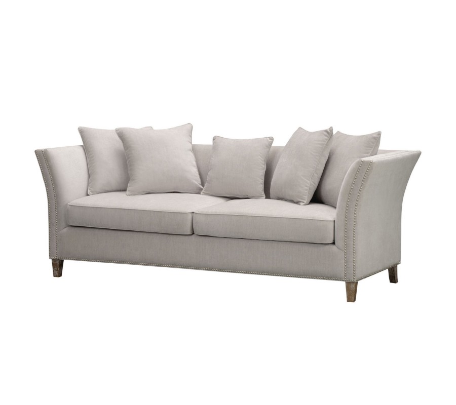 Štýlová sedačka Arla v tvare so zvýraznenými hranami je veľmi pohodlným a ľahko kombinovateľným moderným kúskom do vašej obývačky. Vďaka svojej krémovej farbe krásne zapadne do svetlých moderných interiérov a kombinácia piatich vankúšov na chrbtovej opierke a dvoch pohodlných podsedákov zaistí komfortné sedenie trom osobám. Sedačka Arla s textilným čalúnením je obohatená o dizajnové prvky v podobe hnedých drevených nožičiek vo vintage štýle, ktoré vďaka povrchovej úprave pripomínajú prirodzené opotrebovanie dreva. Štýlové prešívanie v podobe cvokov, ktoré prechádza po obvode sedačky cez chrbtovú opierku, následne po bočných opierkach až po spodok sedacej časti dopĺňajú dizajnový nádych.