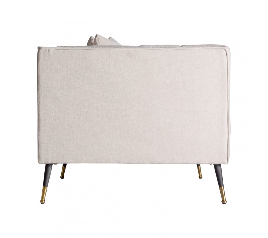 Exkluzívna sedačka Moraira je jedinečným kúskom nesúcim sa v luxusnom art-deco štýle. Dominantným prvkom je chesterfield prešívanie, ktoré zdobí jemný krémový poťah. Sedačka sa tiež vyznačuje zaujímavým elegantným tvarom s opierkou na jednej strane a otvoreným priestorom na druhej. K spríjemneniu vašich chvíľu oddychu okrem pohodlného čalúnenia prispejú aj dva mäkké vankúšiky rovnakej krémovej farby. Celkový dizajn je doplnený štýlovými čierno-zlatými nožičkami zvýrazňujúcimi art-deco vzhľad. Luxusná a elegantná sedačka Moraira krásne zapadne do moderných interiérov ladených v štýle art-deco v kombinácii s nábytkom z kovu a skla.
