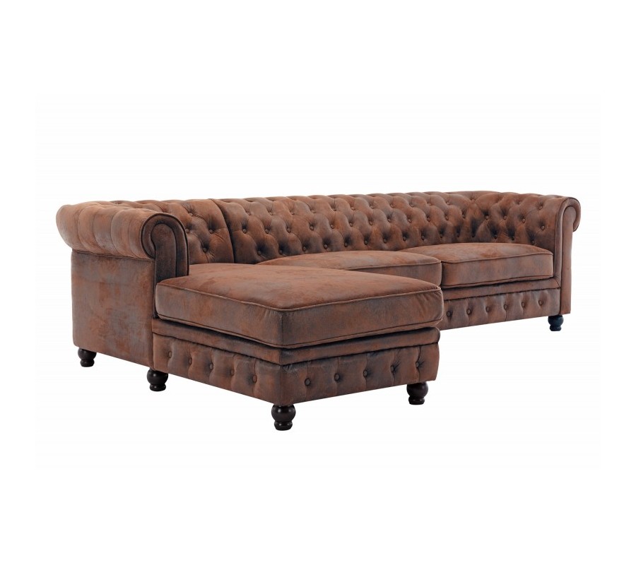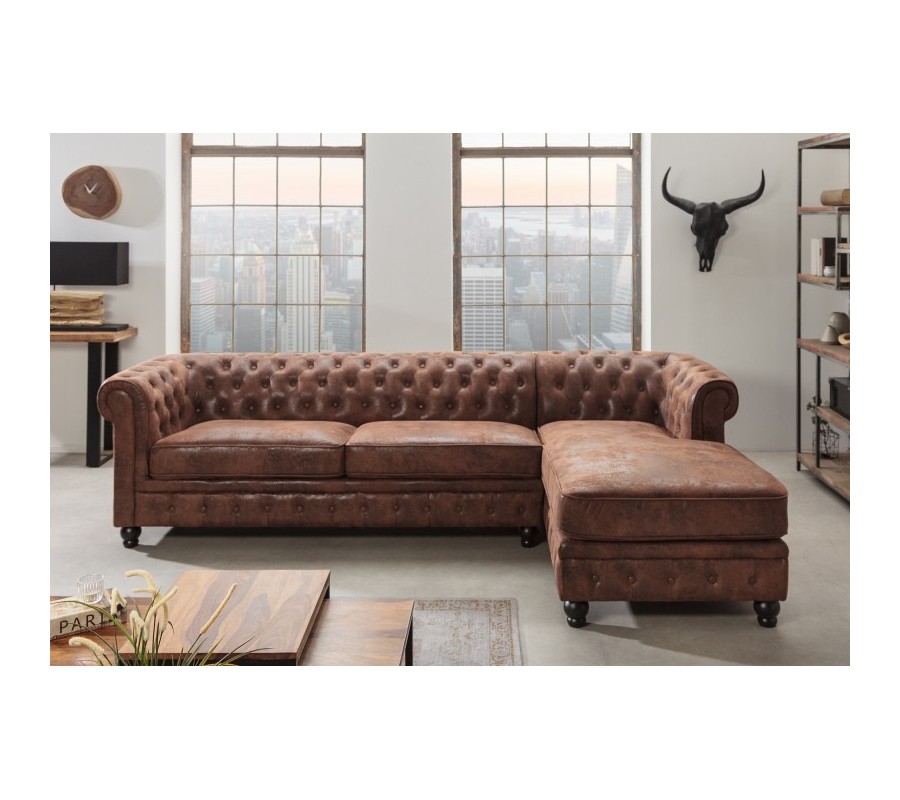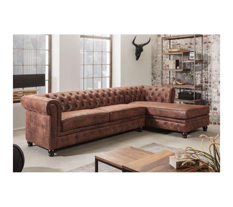 Luxusná rohová vintage chesterfield sedačka Holger hnedá pravá 280cm