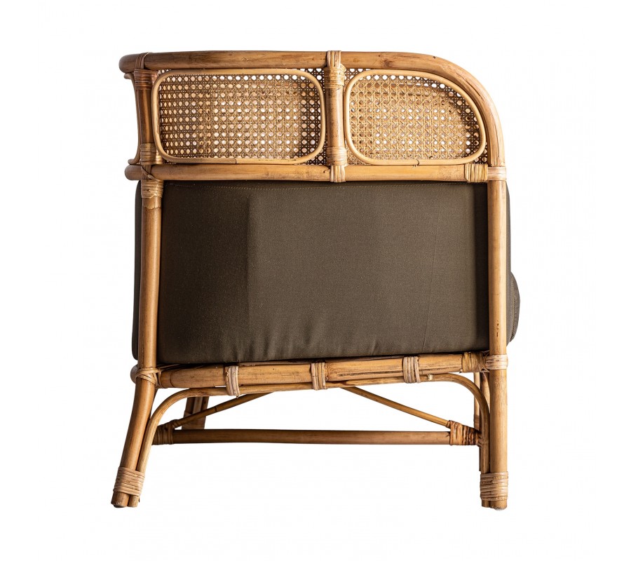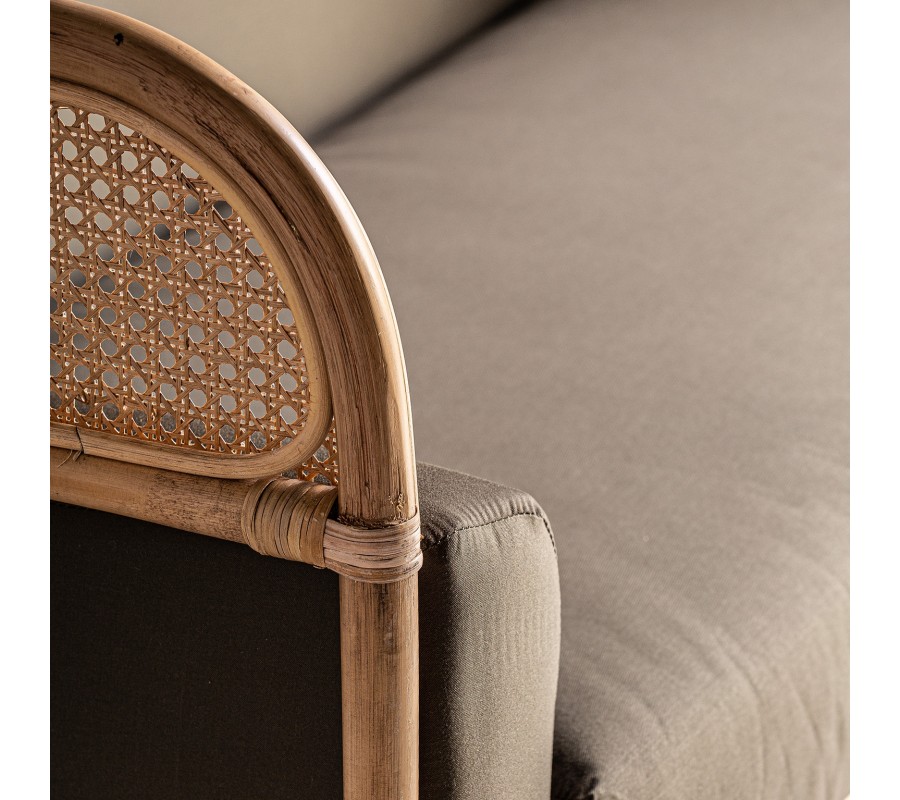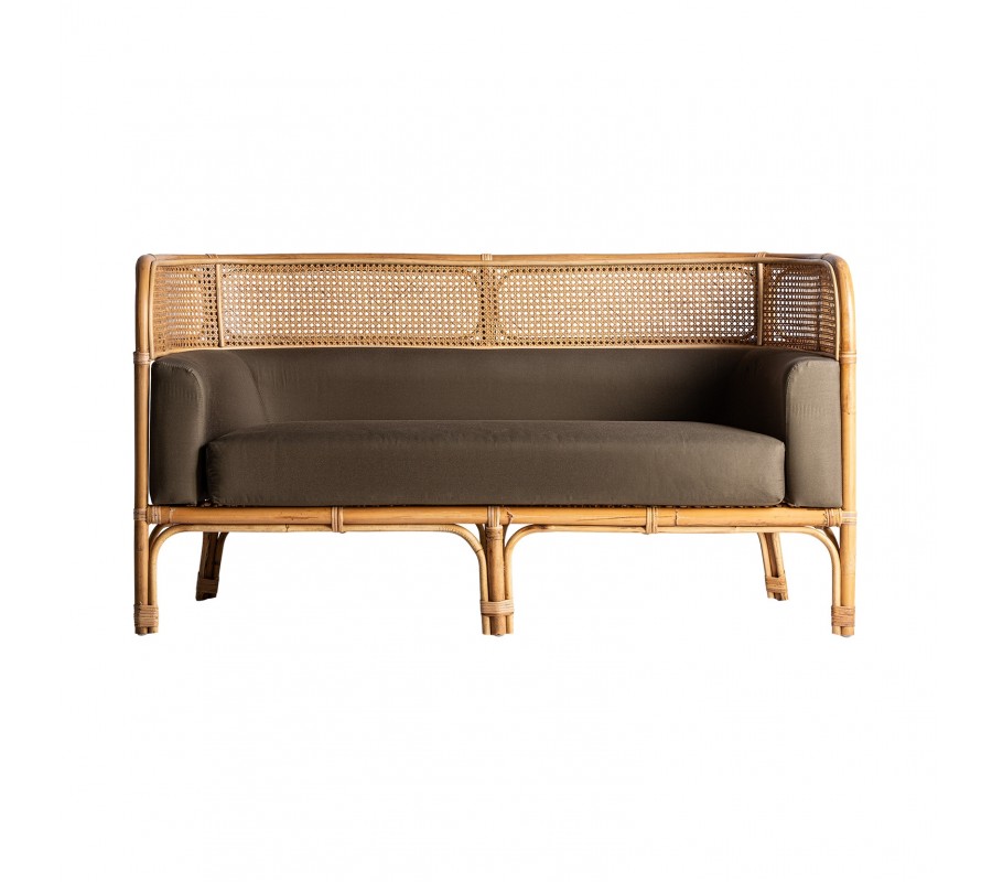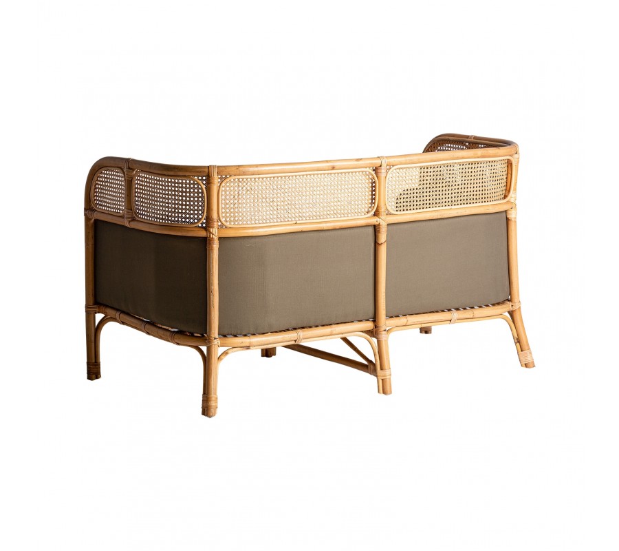 Dvojsedačka Aldea je dizajnovým kúskom, ktorý vo vašom interiéri navnadí jemný retro nádych. Štýlová sedačka vhodná na pohodlné usadenie dvoch osôb je vyrobená z ratanu a jej dominantu tvorí prešívané zaoblené operadlo súvislo prehádzajúce do opierok na ruky. Vzniknutý vzor z prírodného materiálu príjemne doplní retro ladené obývačky, kryté terasy či priestory lobby barov. Na spríjemnenie sedenia poslúži mäkké polstrovanie z textilu v univerzálnej hnedej ťavej farbe vytvárajúcej vkusný súlad s prírodným hnedým odtieňom samotnej konštrukcie. Sedačka Aldea vynikne v kombinácii s masívnym nábytkom a doplnkami z prírodných materiálov.