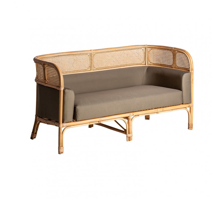 Luxusná ratanová sedačka Aldea do obývačky v naturálnom odtieni s hnedým ťavým textilným poťahom 140cm