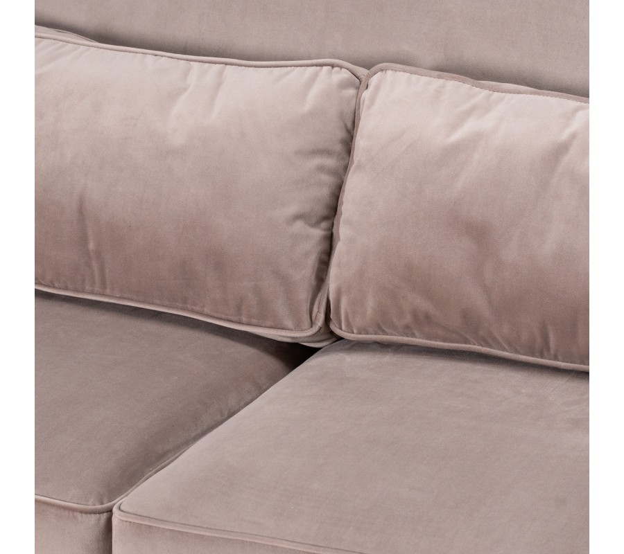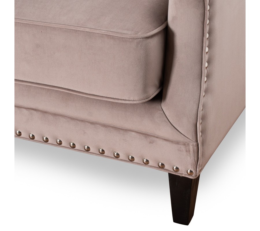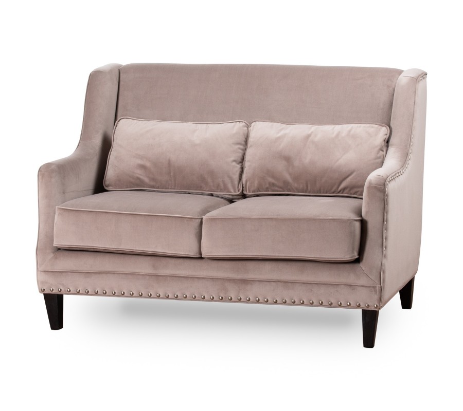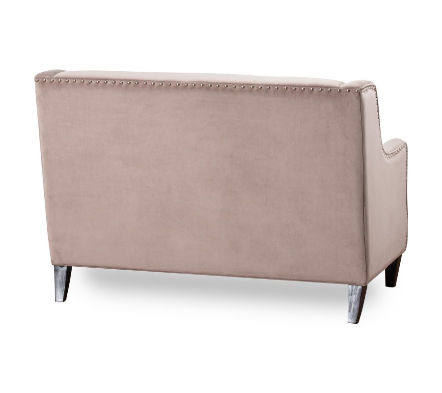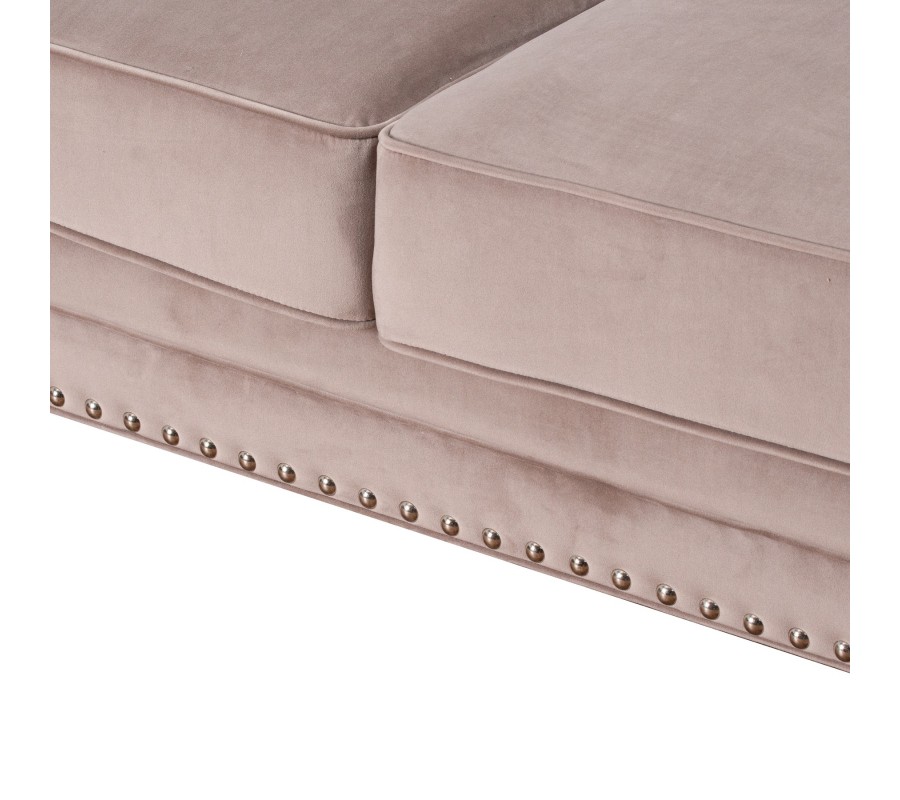Luxusná dvojsedačka Chelsea je voľba pre tých, ktorí si chcú vytvoriť priestor, ktorý je moderný a zároveň nadčasový. Luxusný dojem, ktorým sedačka vďaka prepychovému zamatovému čalúneniu v neutrálnej béžovej farbe pôsobí, predčí len samotný komfort. Poteší Vás ako bohaté polstrovanie, tak set vankúšov, ktoré Vám sedenie spríjemnia ešte o kúsok viac. Opierky na ruky sú dizajnovým oblúkom elegantne prepojené so zadnou časťou. Dvojsedačka Chelsea je dizajnovo čalúnená aj na zadnej strane vďaka čomu je vhodná na umiestnenie do priestoru. Farebne kontrastný prechod z neutrálnej bledej farby čalúnenia do tmavej hnedej farby nožičiek umocňuje pocit stability. Dvojedačka Chelsea je po okrajoch opierok a v prednej časti doplnená vybíjanými detailmi, v podobe vybíjaných cvokov v lesklej staro zlatej farbe, ktoré pôsobia vkusne a jednoducho. Nadčasový dizajn, prepychové materiály, maximálny komfort a kompaktný rozmer, to je moderná dvojsedačka Chelsea, ktorou dodáte charakter Vašej spálni, obývačke či hotelovej lobby.
