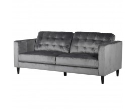 Dizajnová trojsedačka Faux vo flanelovom zamatovom čalúnení sivej farby s dizajnovým prešívaním a čiernymi nožičkami 198cm