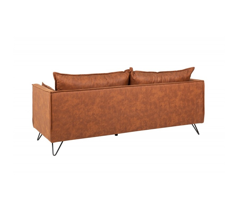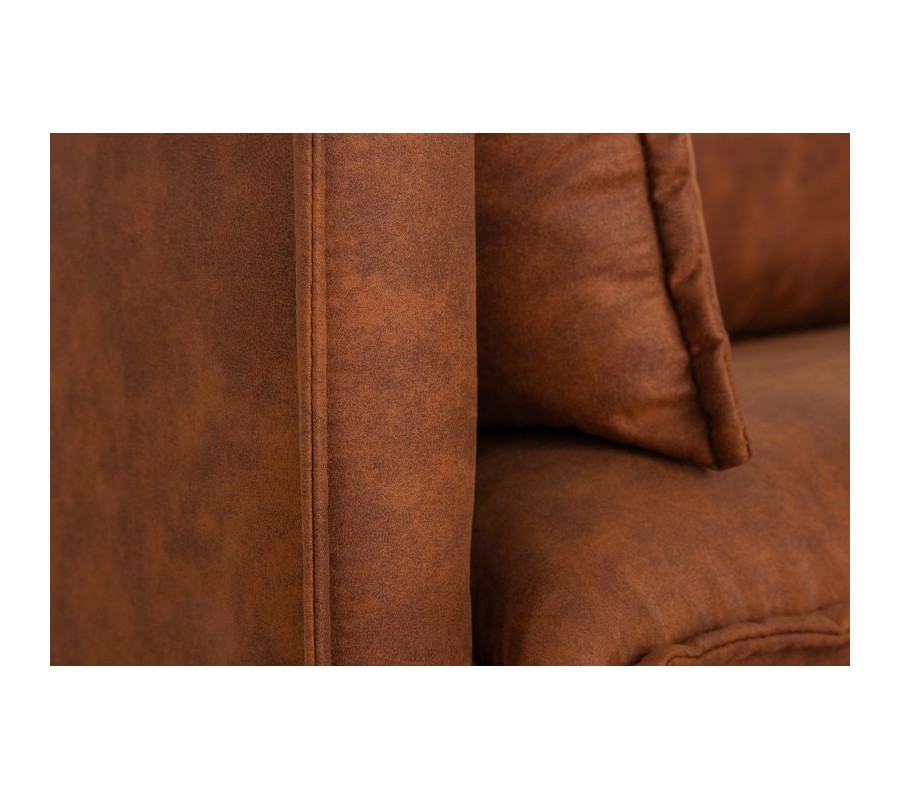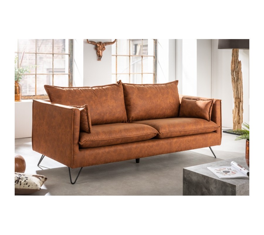 Luxusná sedačka Amalfi vkusne zapadne do obývačiek zariadených v štýle retro. Zaujme svojím klasickým prevedením, ktoré vďaka vizuálnemu efektu materiálu a dizajnovým nožičkám dostáva jemný retro nádych. Čalúnenie z mikrovlákna pôsobí koženým dojmom a nesie sa v dizajnovom ťavom hnedom odtieni. Vďaka tomu je výborne kombinovateľným a štýlovým kúskom, ktorý zapadne do klasických obývačiek, priestorov tématicky ladených retro kaviarní či recepcii hotelov. Kovové nožičky dávajú sedačke industriálny nádych, vďaka čomu sa nestratí ani v takto zariadenom interiéry obývačky či inej spoločenskej miestnosti. Sedačka disponuje štyrmi vankúšmi so zvýrazneným okrajovým prešívaním, ktoré sa postarajú o váš stopercentný komfort. K vášmu pohodliu poslúžia aj dva bočné vankúše slúžiace ako podrúčky, ktoré nie sú fixne upevnené na konštrukciu a tak je možné ich premiestniť podľa potreby. Sedačka je ideálna pre podhodlné usadenie dvoch až troch ľudí. Skvelú kombináciu vytvorí napríklad s masívnym či kovovým nábytkom v priestoroch tmavých odtieňoch.