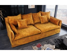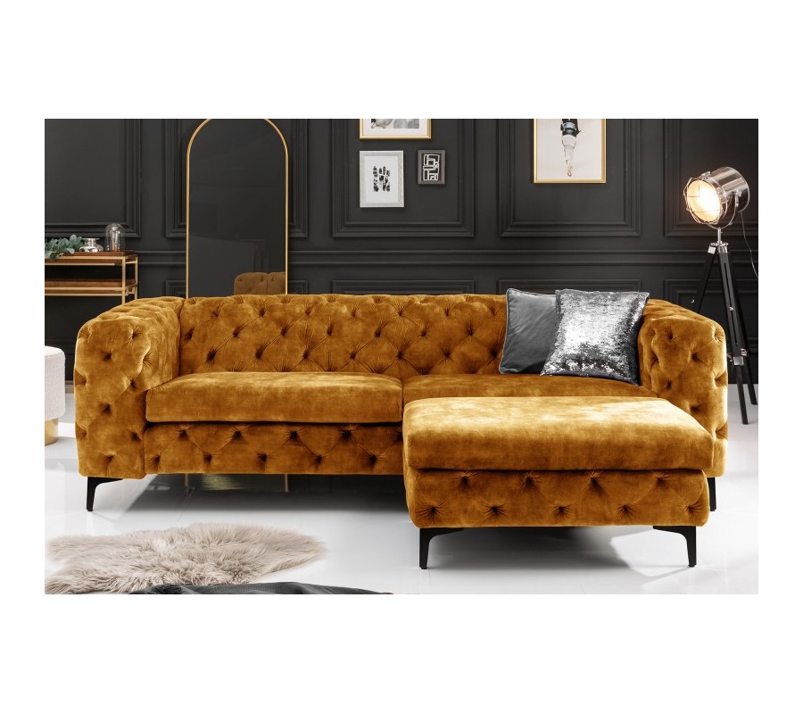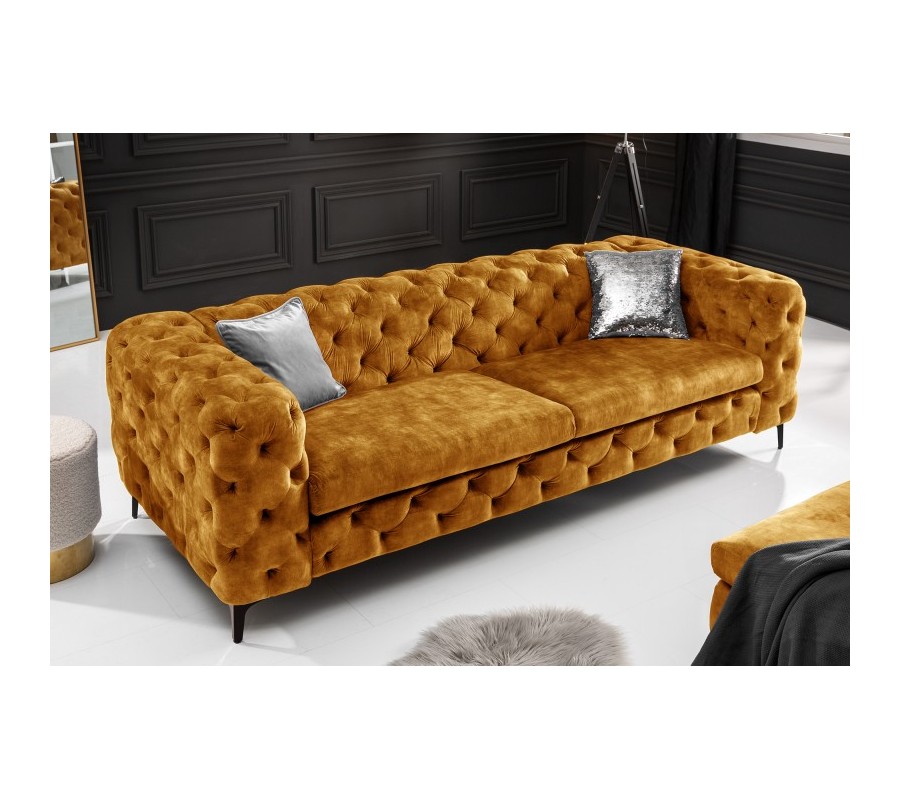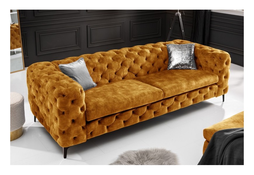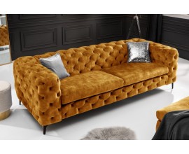Chesterfield sedačka Modern Barock so zamatovým poťahom horčicovej farby 235cm