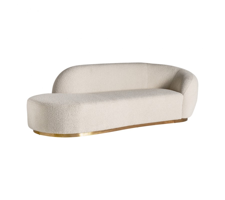 Art deco buklé sedačka Minneapolis v bielej farbe so zlatou kovovou podstavou 237cm