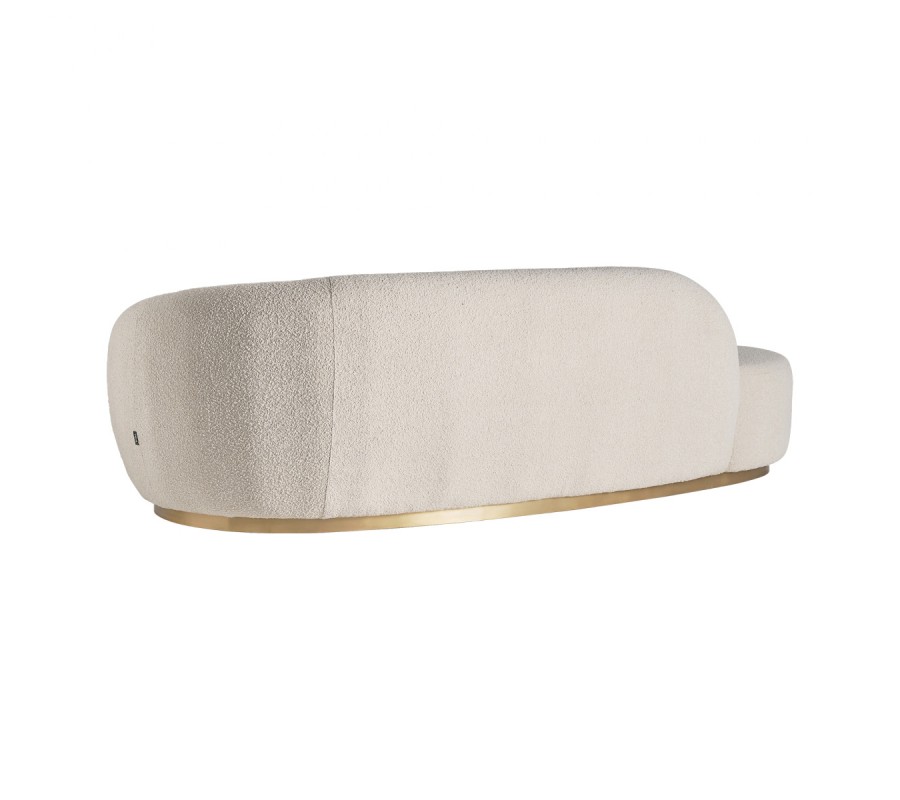 Luxusná sedačka Minneapolis zaujme svojím elegantným a kvalitným prevedením. Tento štýlový nadčasový kúsok výborne poslúži na zariadenie moderne či art deco ladených obývačiek, no svoje miesto si nájde aj v luxusných hotelových či firemných recepciách alebo beauty salónoch. Jej dominantným prvkom je poťah z materiálu buklé, ktorý sa vyznačuje svojou jemnosťou a vlneným vzhľadom. Vďaka jeho mäkkosti vám sedačka poskytne dokonalé pohodlie, ku ktorému dopomôže tiež príjemná opierka chrbta. Elegantná biela farba poťahu vytvára vkusnú nadčasovú kombináciou so zlatou kovovou podstavou. Na sedačke okrem pútavého materiálu a kvalitného prevedenia zaujmú tiež jej elegantné zaoblené tvary. Opierková časť situovaná na jednu stranu pôsobí štýlovým moderným dojmom a zároveň je tak sedačka vhodná aj na umiestnenie do rohu. Luxusný dizajn sedačky Minneapolis zvýrazníte kombináciou so zlatými doplnkami z kovu či prvkami so zrkadlovým efektom. Sedačka Minneapolis je vhodná na pohodlné usadenie 3 osôb.