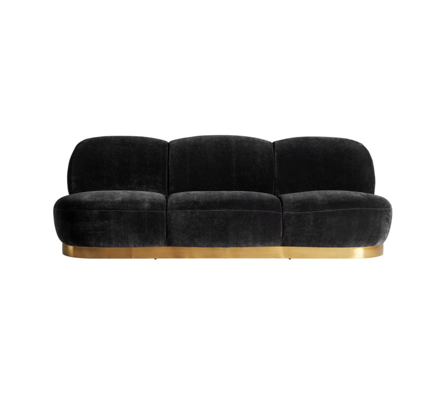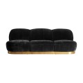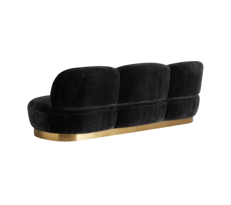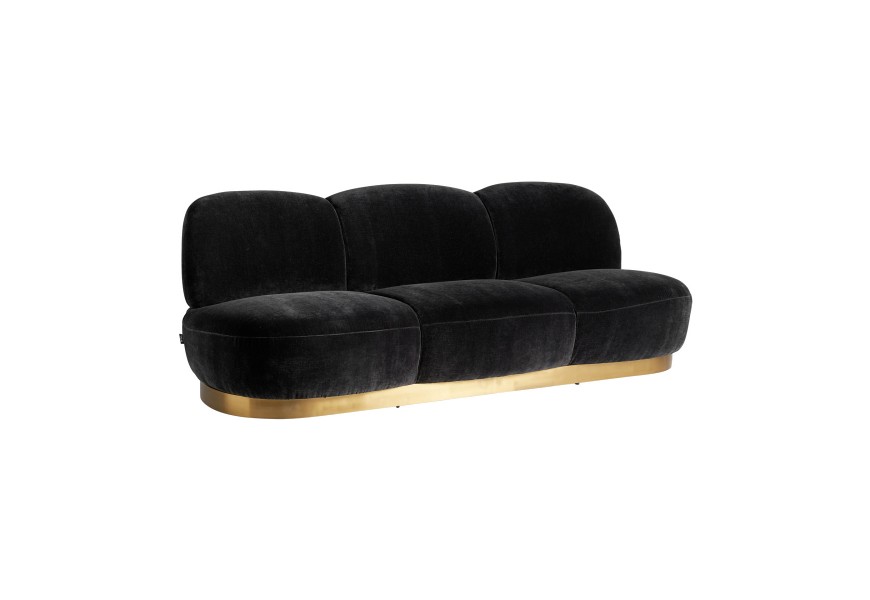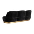 Luxusná art deco čalúnená sedačka Avondale s čiernym zamatovým poťahom a zlatou podstavou 233cm