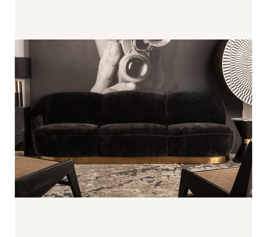 Luxusná sedačka Avondale krásne zapadne do art deco či glamour ladených obývačiek. Príjemný zamatový poťah sa nesie v univerzálnej čiernej farbe, vďaka čomu je vynikajúco kombinovateľným kúskom. Zlatá kovová podstava v kombinácii s poťahom vytvára nezameniteľný nádych štýlu art deco, ktorý je dnes obľúbený pri zariaďovaní luxusných moderných interiérov. Sedačka je jednoduchým prešívaním rozdelená na tri časti, čím vznikajú elegantné zaoblené tvary. Mäkké polstrovanie aj príjemný zamat sa postarajú o vaše dokonalé pohodlie pri večerných chvíľach oddychu či posedení s rodinou alebo priateľmi. Sedačka Avondale vkusne doplní obývačky zariadené nábytkom z kovu, tmavého masívneho dreva či skla. Pre umocnenie štýlu art deco odporúčame tiež kombináciu so zlatými zrkadlami, dizajnovým koberčekom s vysokým vlasom či doplnkami so zrkadlovým efektom. Sedačka je vhodná pre pohodlné usadenie 4 ľudí.