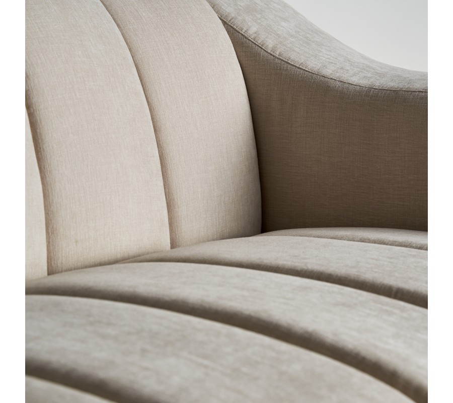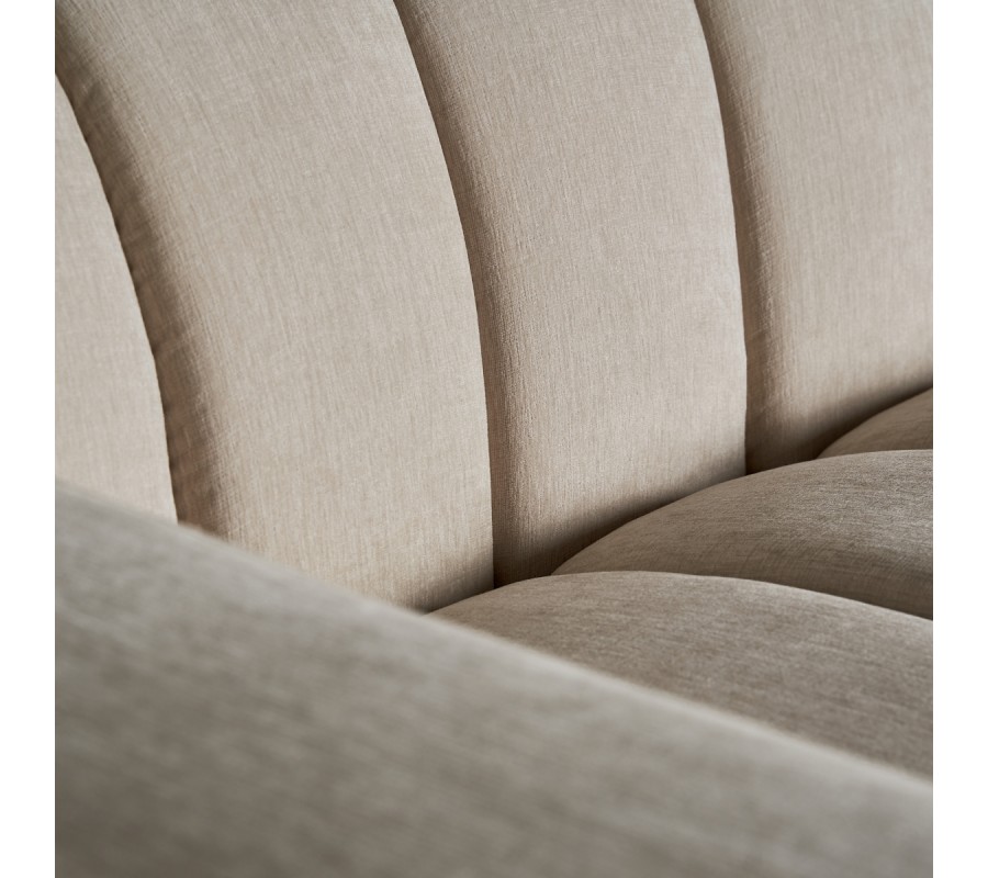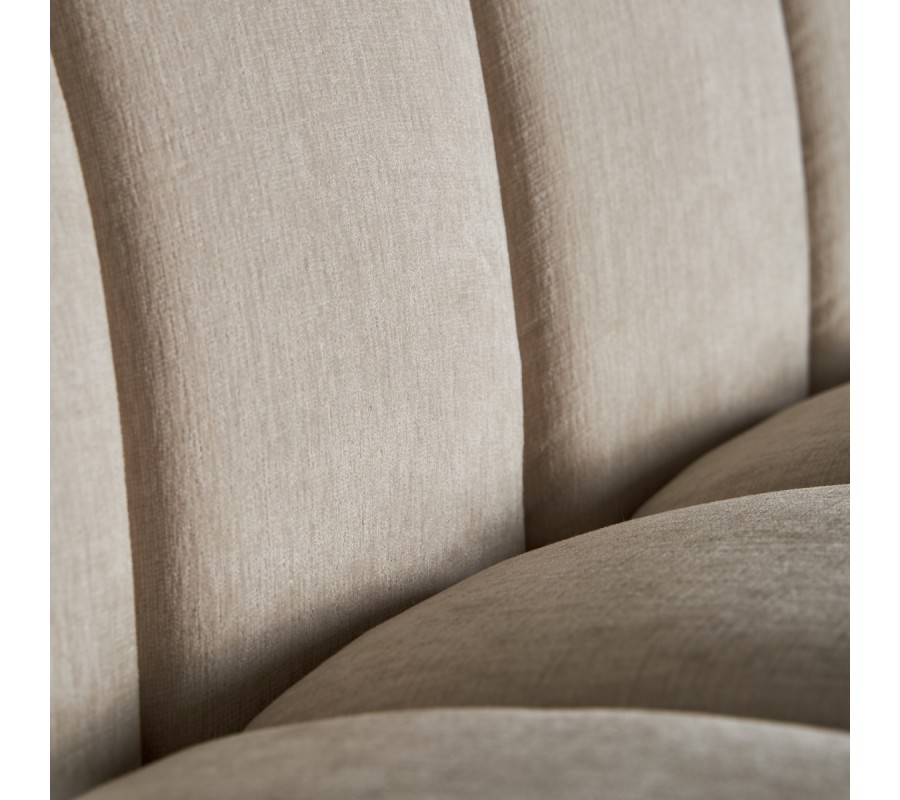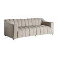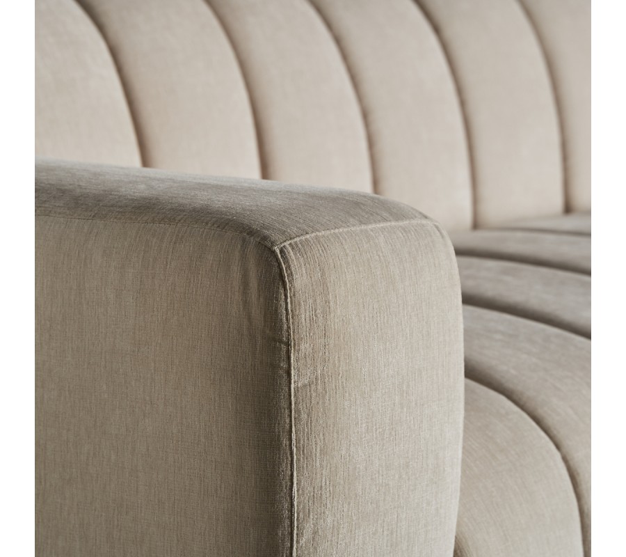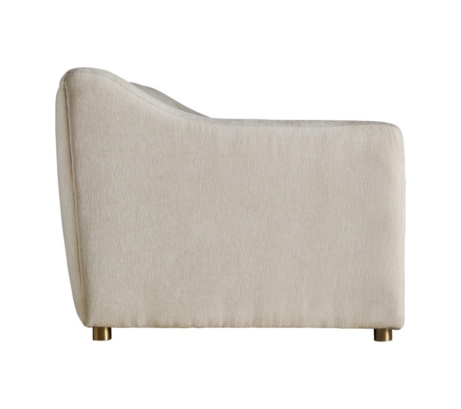 Luxusná sedačka Mauvre predstavuje elegantné a nadčasové riešenie do moderne a art deco ladených obývačiek. Už na prvý pohľad upúta pozornosť svojím elegantným dizajnom, vkusným prešívaným čalúnením a svetlou farebnosťou, ktorá rozžiari a presvetlí vaše priestory. Krémový biely poťah z príjemného textilného materiálu sa postará o váš komfort a zároveň pôsobí elegantným dojmom. Jednoduché lineárne prešívanie a hladké organické línie sedačky vytvárajú unikátny moderný vzhľad, vďaka čomu vkusne doplní nielen priestory štýlových obývačiek, ale svoje miesto si nájde aj v priestoroch luxusných kaviarní alebo čajovní, beauty salónov či hotelových recepcií. Biely poťah prepájajúci estetickú funkciu a vysoký komfort dopĺňajú dizajnové zlaté nožičky umocňujúce art deco vzhľad. Sedačka je vhodná pre pohodlné usadenie troch ľudí. Pre početnejšie rodiny či tých, ktorí radi hostia návštevy, je skvelým riešením aj kombinácia s našim rovnomenným kreslom Mauvre!