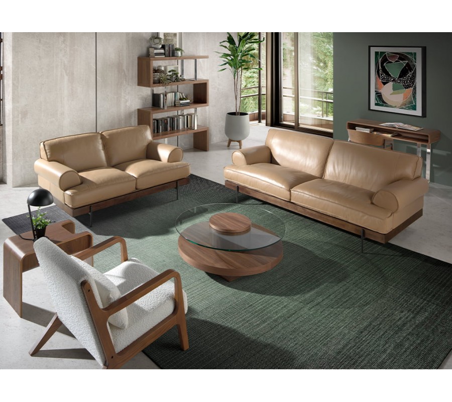 Luxusná dvojsedačka Vita Naturale okrem kvalitného čalúnenia disponuje aj konštrukciou z masívneho dreva v orechovo hnedej farbe, ktoré je doplnené elegantnými oceľovými nožičkami v epoxidovo čiernom prevedení. Nožičky dodajú jemný nádych industriálneho štýlu, zatiaľ čo kombinácia masívu a koženého čalúnenia umocní taliansky štýl a avantgardný nádych.