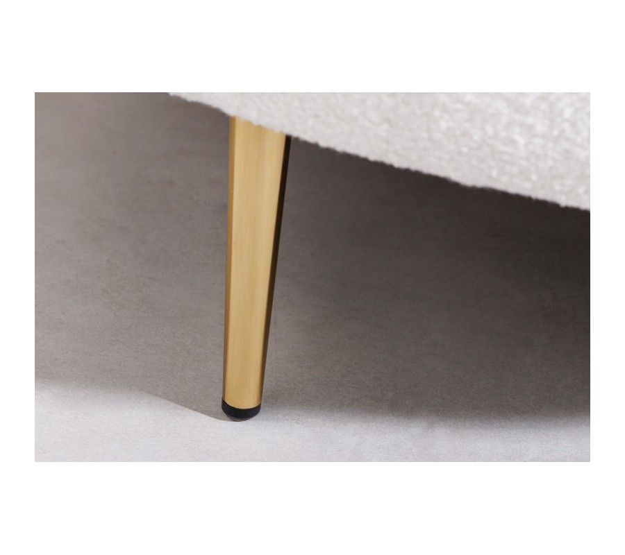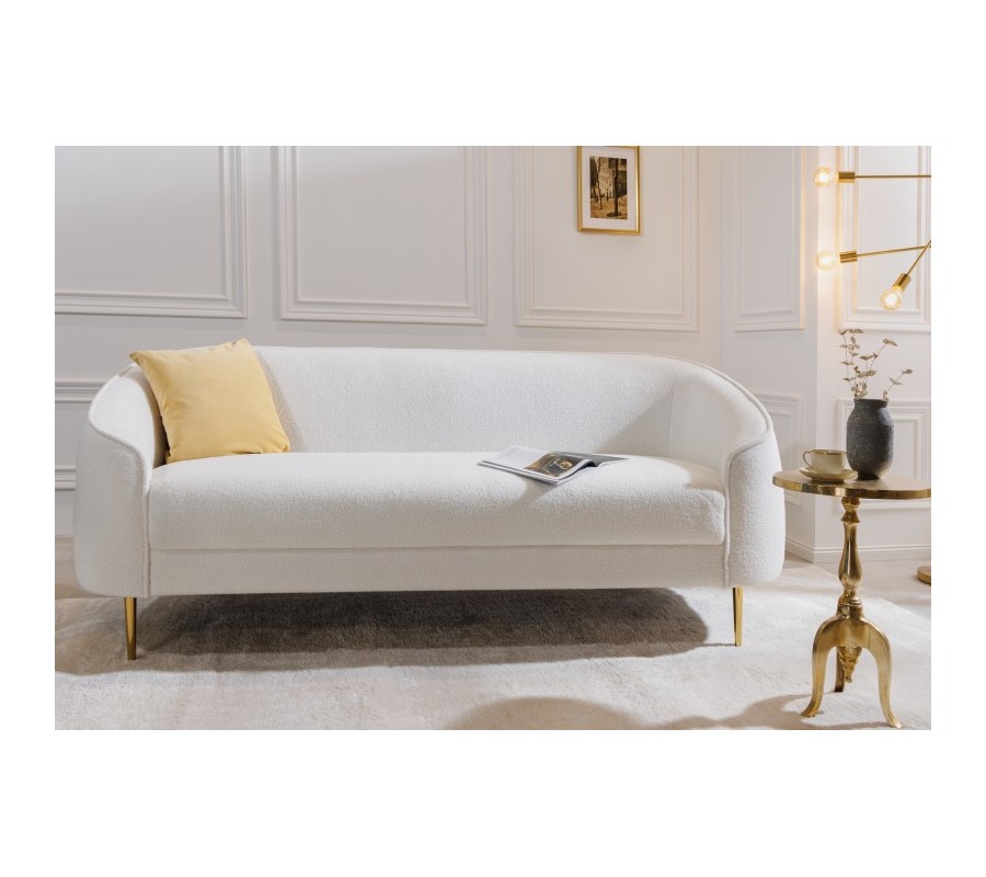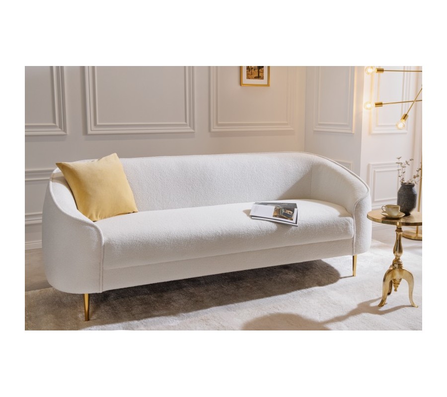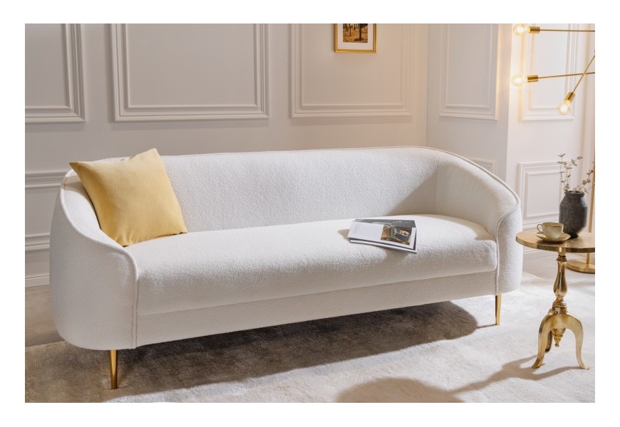 Art deco dizajnová sedačka Sintra s boucle poťahom bielej farby na zlatých nožičkách 205cm