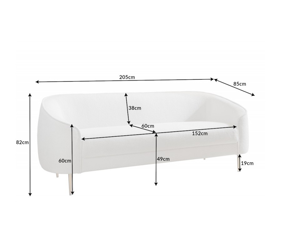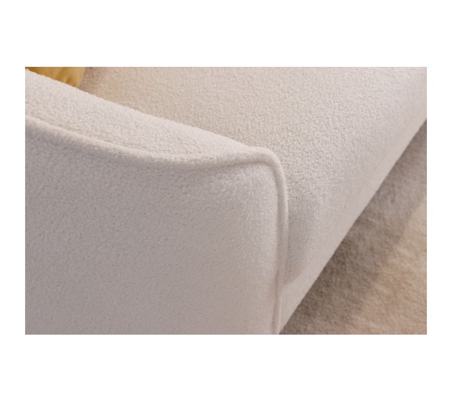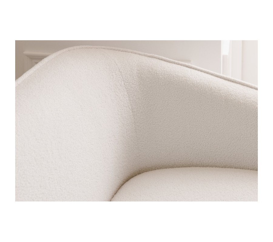 Štýlová sedačka Sintra je elegantným a pohodlným kúskom ideálnym na spestrenie moderných obývačiek. Príjemné mäkké čalúnenie z buklé materiálu sa nesie v bielej farbe, čím vzniká vkusný a estetický vzhľad. Buklé tkanina sa zároveň vďaka svojej mäkkosti postará o váš dokonalý komfort. K tomu dopomôže tiež dizajnovo zaoblené operadlo plynulo prechádzajúce do bočných opierok na ruky. Biele čalúnenie vkusne dopĺňajú kovové zlaté nožičky, ktoré vytvárajú elegantný glamour nádych. Celkový dizajn sedačky Sintra si vás okrem modernách materiálov a nadčasovej farebnosti získa svojimi elegantnými zaoblenými líniami a nádychom štýlu art deco. Dá sa vynikajúco kombinovať s výraznými tmavými farbami, čím vznikne moderný kontrast, a rovnako tiež s doplnkami z kovu či skla. Okrem obývačiek vkusne doplní aj priestory hotelov, dizajnových kaviarní či beauty salónov.