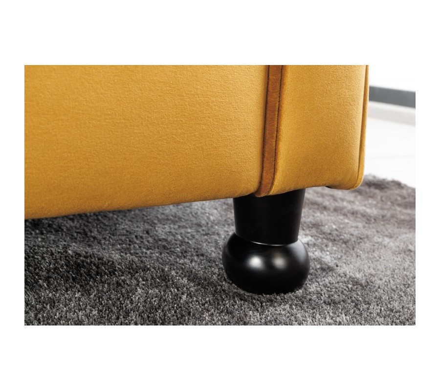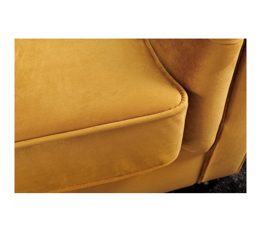 Ak do svojich priestorov hľadáte štýlovú, luxusne pôsobiacu a zároveň kvalitnú sedačku, ktorá zaujme na prvý pohľad, ste na správnom mieste! Naša sedačka Milenna sa pýši nádherným elegantným vzhľadom, ktorému dominuje výrazná horčicovožltá farba príjemného zamatového čalúnenia. Poťah je doplnený o nadčasové chesterfield prešívanie, ktoré vytvára klasický luxusný vzhľad. Celkový moderný efekt je doplnený elegantne zaoblenými podrúčkami a čiernymi drevenými nožičkami. Výrazný vzhľad sedačky Millena krásne vynikne v tmavých kontrastných priestoroch v kombinácii s kovovým či skleneným konferenčným stolíkom alebo tmavým masívnym nábytkom.