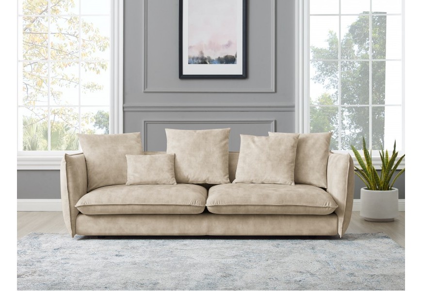 Moderná čalúnená sedačka Simeon so zamatovým poťahom vo farbe champagne 225cm