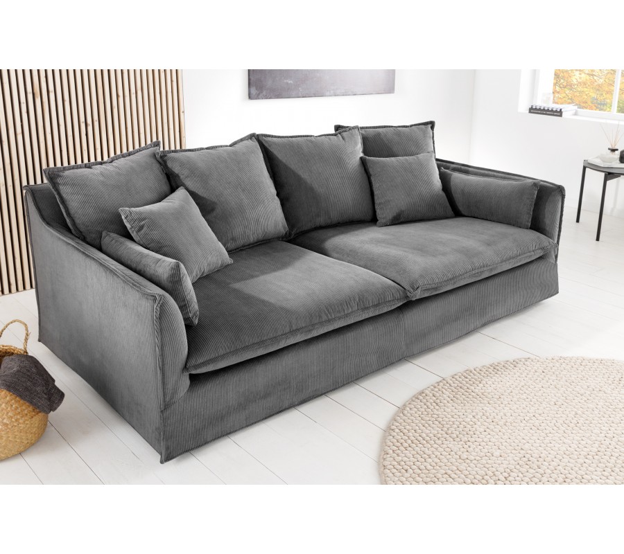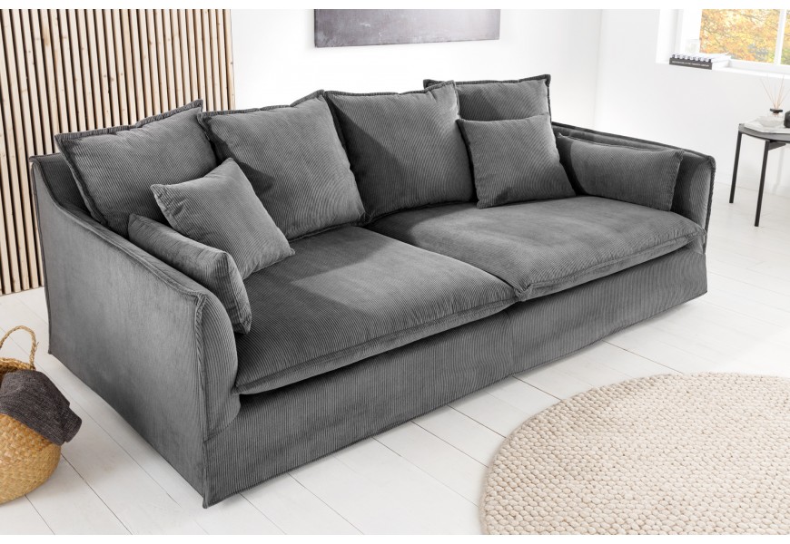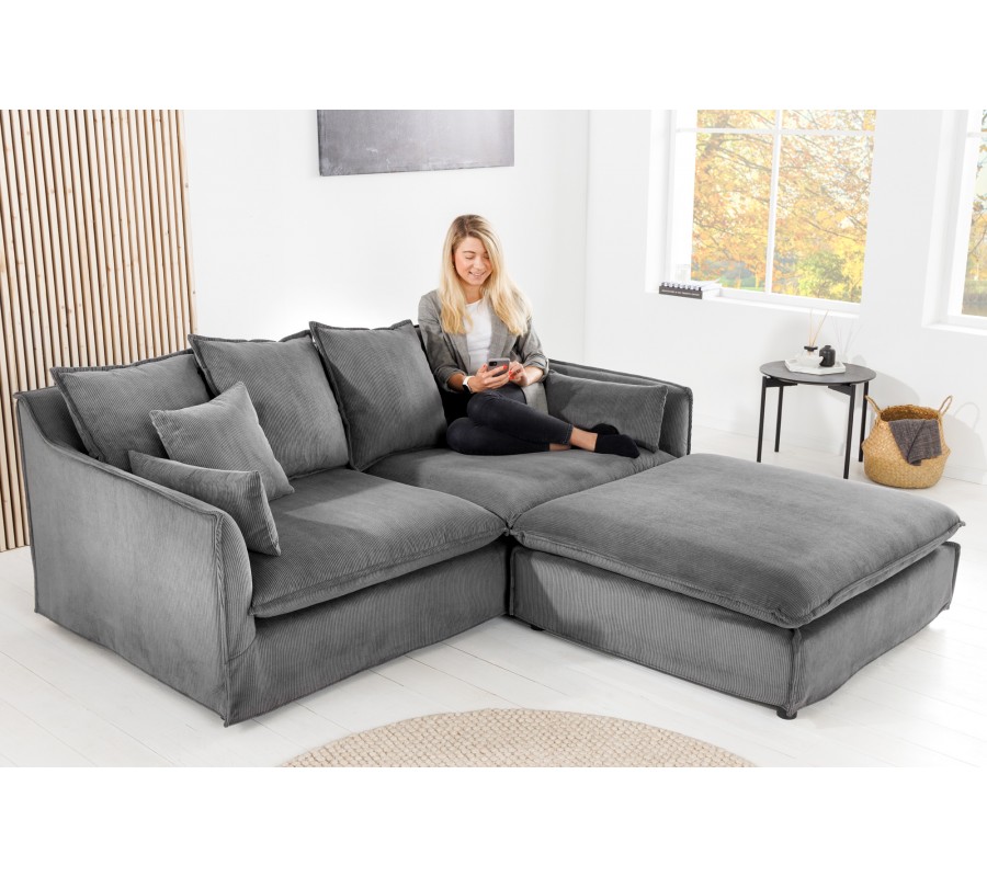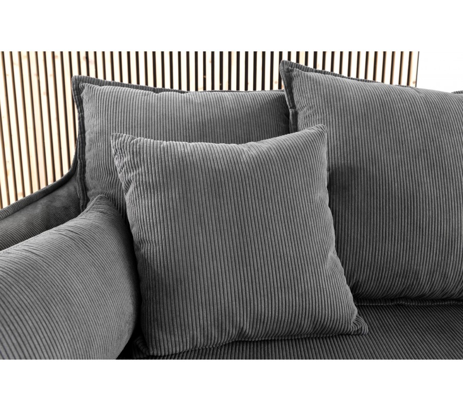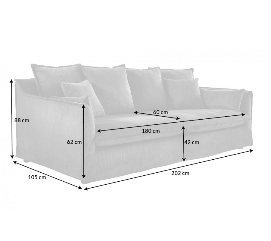 Moderná dizajnová sedačka Heaven na prvý pohľad upúta svojím originálnym celoplošným menčestrovým čalúnením z mikrovlákna. Dizajnovo sedačke dominuje 8 vankúšov v rôznych veľkostiach s poťahom v rovnakom prevedení. Zaujímavým detailom je výrazný lem na hranách sedačky a taktiež na okrajoch vankúšov. Opierky na ruky sú čalúnené a zaoblené, vďaka čomu pôsobí sedačka útulným a domáckym dojmom. Sivá farba je ľahko kombinovateľná a hodí sa takmer do každej obývačky. Môžete ju doplniť moderným nábytkom v neutrálnych tónoch alebo v prírodných farbách, pri ktorom vynikne jedinečný materiál poťahu. Sivá farba sa tiež hodí do obývačky v škandinávskom štýle. Pokiaľ chcete priestor viac oživiť, môžete pridať farebné doplnky a dekorácie, alebo štýlový retro stolík. Na sedacej ploche s rozmerom 180x80 cm vo výške 42 cm usadíte tri osoby. Pre maximálne pohodlie môžete sedačku doplniť taburetkou s rovnakým poťahom. Sedačka má nosnosť 180 kg a výplň z pružinového jadra. Poťah je možné dať dole pre ľahšie čistenie. Pre maximálne pohodlie môžete sedačku doplniť taburetkou s rovnakým poťahom.
