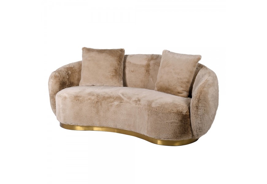 Art deco dizajnová sedačka Venti s hnedým poťahom z umelej kožušiny a zlatou podstavou 190cm