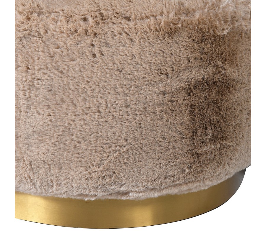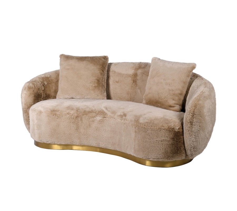 Štýlová sedačka Venti zaujme svojím elegantným vzhľadom v art ešco štýle. Nesie sa v svetlohnedom odtieni, ktorý vkusne doplní váš interiér. Mäkké čalúnenie je nielen esteticky zaujímavé, ale poteší vás aj svojou príjemnosťou na dotyk. S poťahom z umelej kožušiny si môžete dopriať dokonalý komfort pri poobednej káve, posedení s priateľmi či večerným relaxom s dobrou knihou. Okrem príjemného materiálu sedačka Venti zaujme aj svojím organickým zaobleným tvarom. Elegantný art deco nádych celému dizajnu vnáša kovová podstava v žiarivej zlatej farbe vytvárajúca kontrast k svetlohnedému čalúneniu. Sedačka Venti tak vkusne doplní priestory art deco i glamour ladených obývačiek v kombinácii s kovovým a skleneným nábytkom.