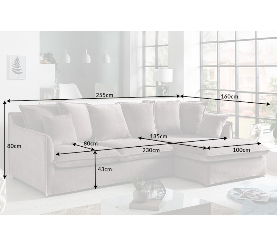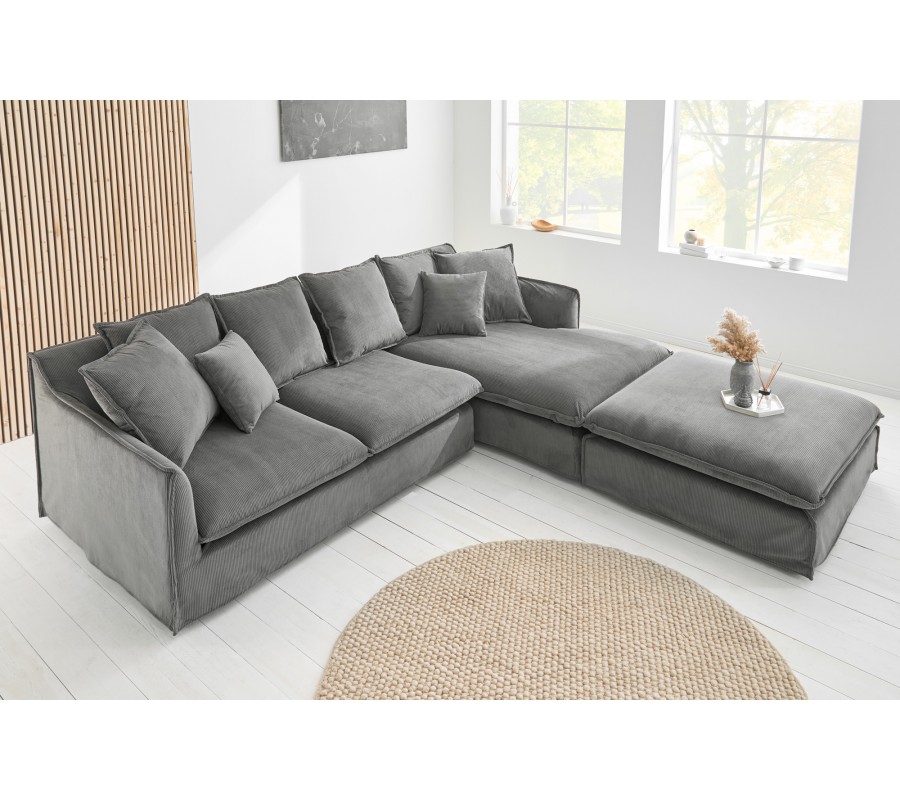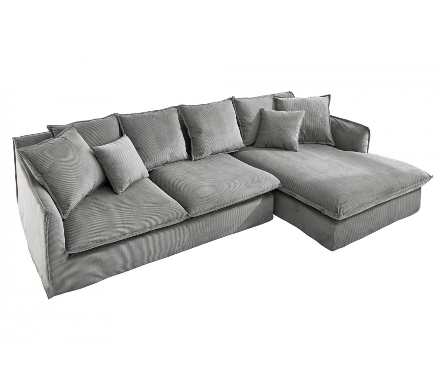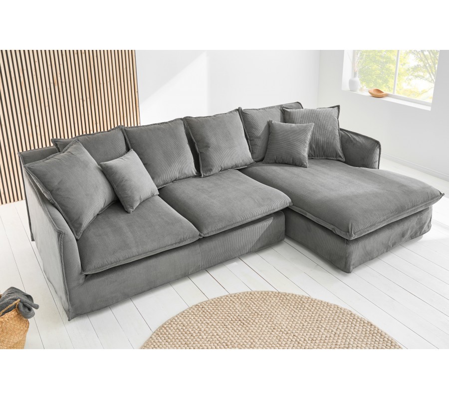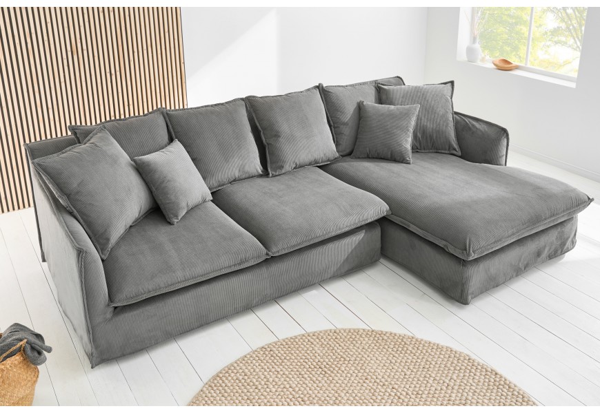 Moderná rohová dizajnová sedačka Heaven s menčestrovým poťahom sivá pravý roh 255 cm