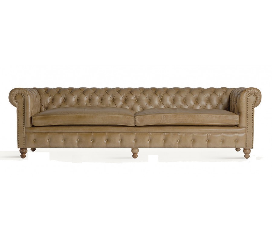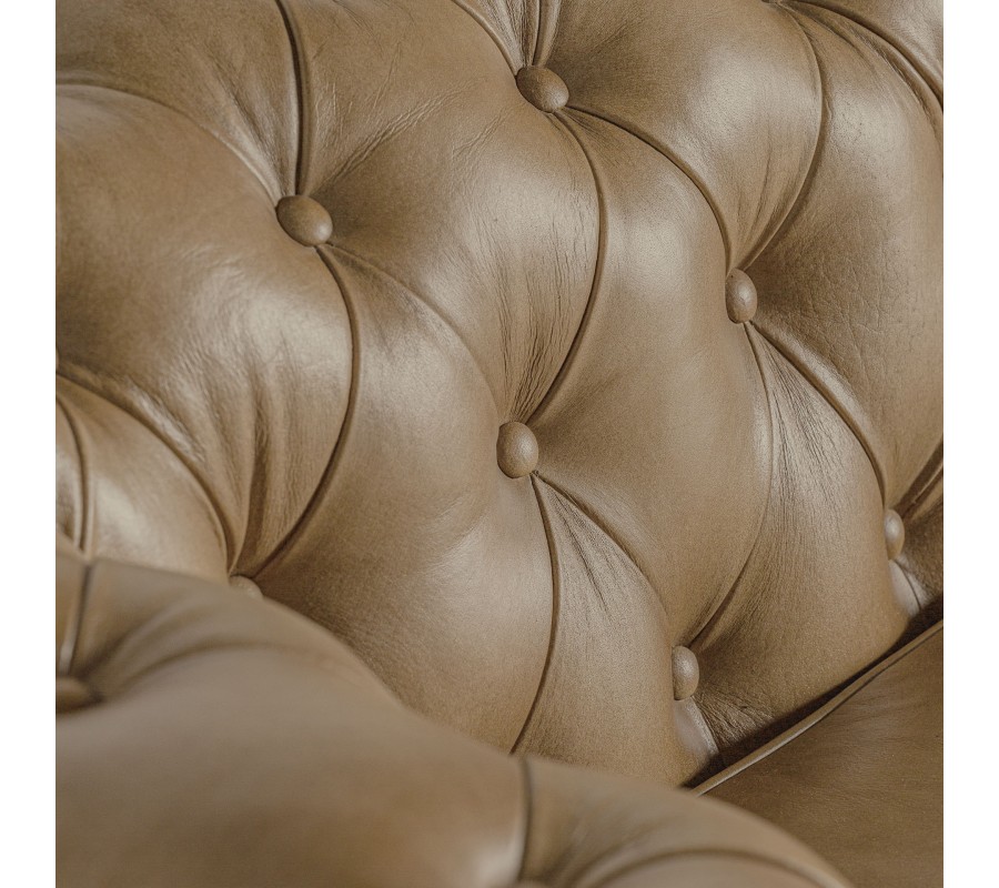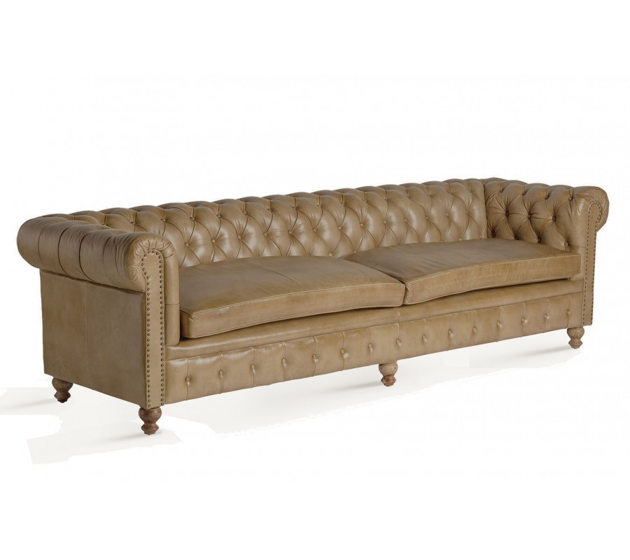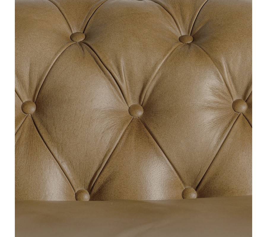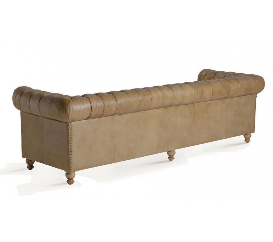 Luxusná chesterfield sedačka Talbot s prešívanou opierkou a svetlým hnedým poťahom z pravej kože 268 cm