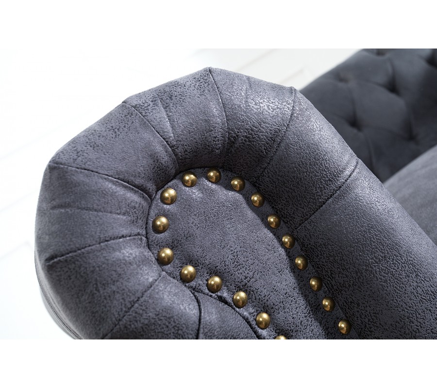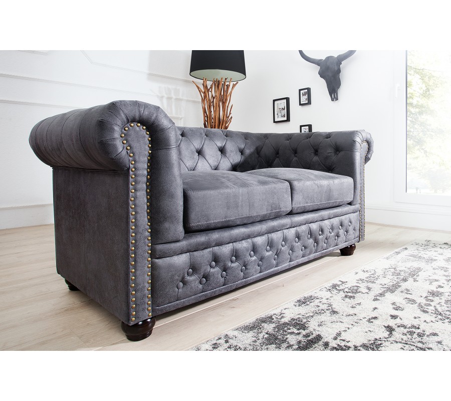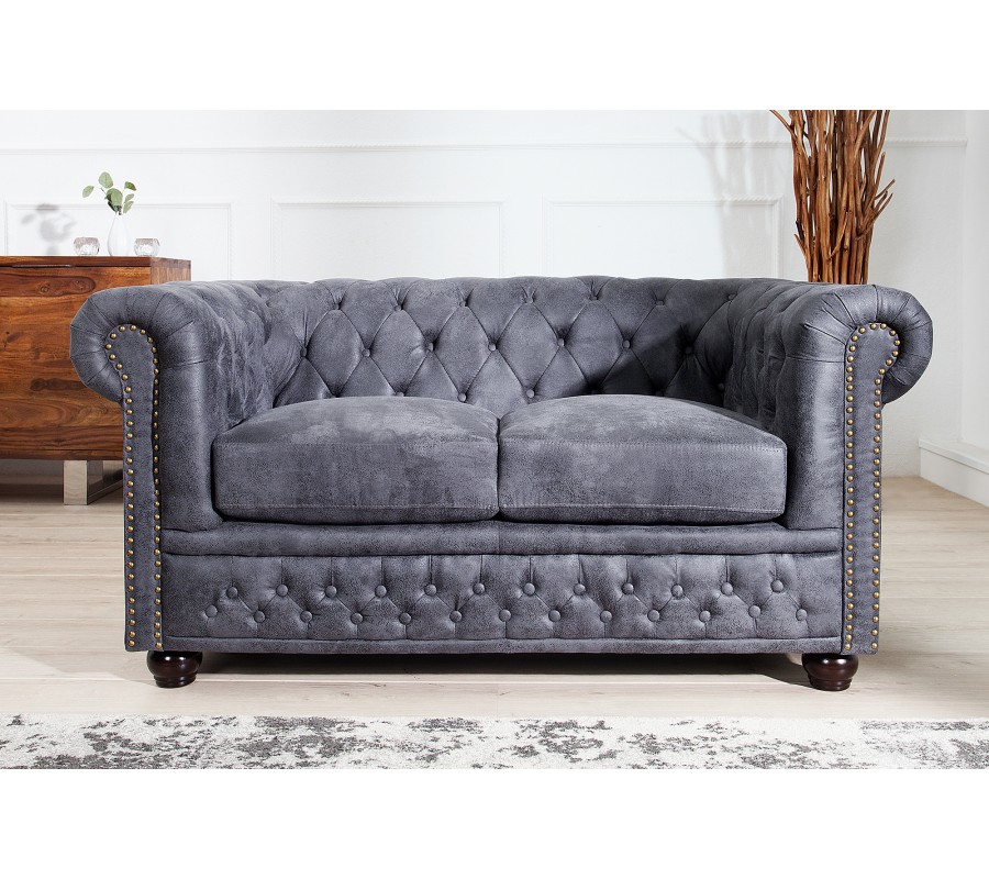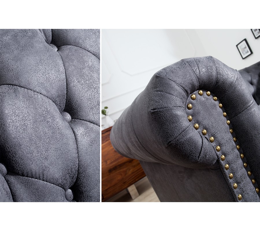 Dvojsedačka Chesterfield Grau prinesie do vašej obývačky nádych klasického luxusu. Očarí vás tiež elegantné sivé prevedenie s vintage efektom.