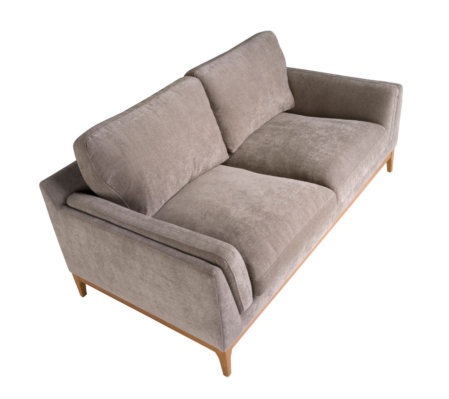 Svetlý hnedosivý odtieň sedacej časti výborne korešponduje s naturálnou medovo hnedou farbou drevenej podstavy. Táto kombinácia zemitých farieb pôsobí harmonickým a sofistikovaným dojmom. Podstavu tvoria štyri hranaté nožičky. Vo vrchnej časti sa v oblúčiku pripájajú na lineárnu obdĺžnikovú spojnicu.