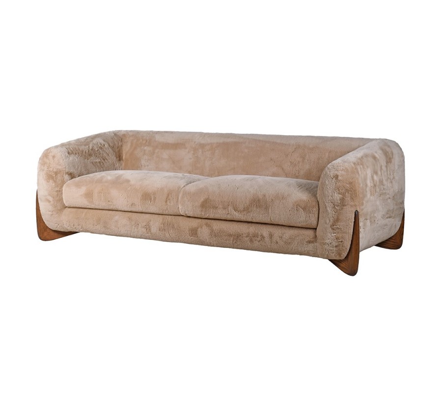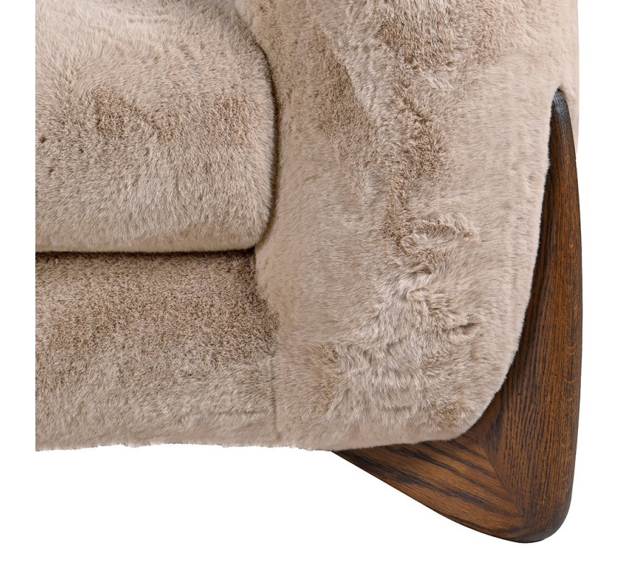 Sedačka Fluffy bude štýlovým stredobodom vašej obývačky. Kombinácia kožušiny a dreva prinesie do priestoru pocit tepla a útulnosti, zatiaľ čo svetlá hnedá farba pôsobí elegantným dojmom.