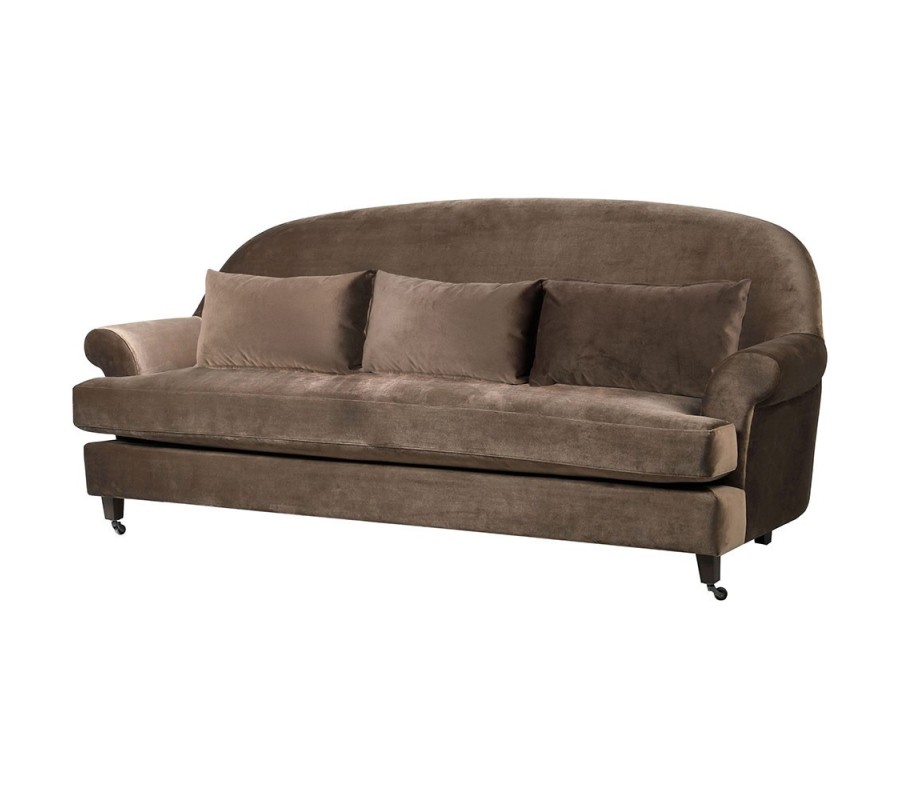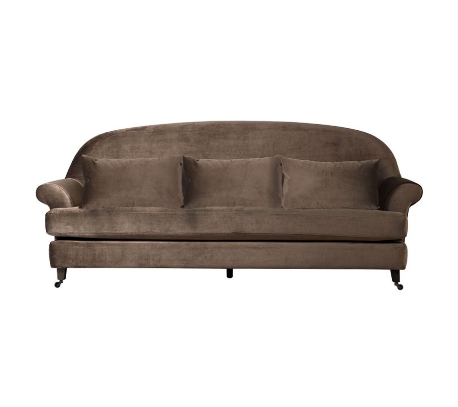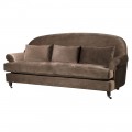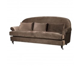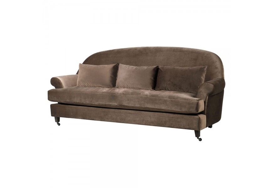 Retro štýlová trojmiestna sedačka na kolieskach Taupe v hnedej farbe so zamatovým poťahom s klasickým nádychom 225 cm