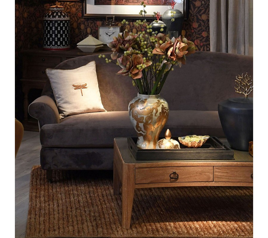 Sedačka je vhodná do interiérov zariadených v retro, vintage alebo art deco štýle, kde vynikne svojím elegantným vzhľadom. Kombinovať ju možno s drevenými stolíkmi vo svetlých alebo tmavých odtieňoch, prípadne s kovovými doplnkami v zlatom alebo bronzovom prevedení, ktoré zvýraznia jej luxusný štýl. Pre oživenie a kontrast sú vhodné dekorácie v teplých odtieňoch, ako sú medené alebo tmavomodré vankúše, zlaté alebo mosadzné svietniky a jemné závesy v krémovej či béžovej farbe.