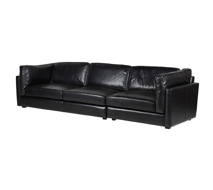 Luxusná kožená obdĺžniková čalúnená trojmiestna sedačka Sofia s čiernym lesklým povrchom 286 cm