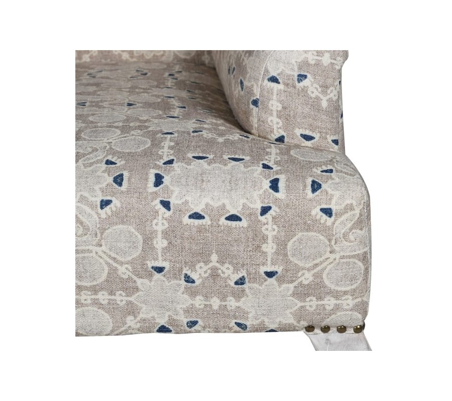 Luxusná orientálna dvojmiestna béžová sedačka Samie so vzorovaným bavlnený poťahom a mangovými nožičkami s patinou 153 cm