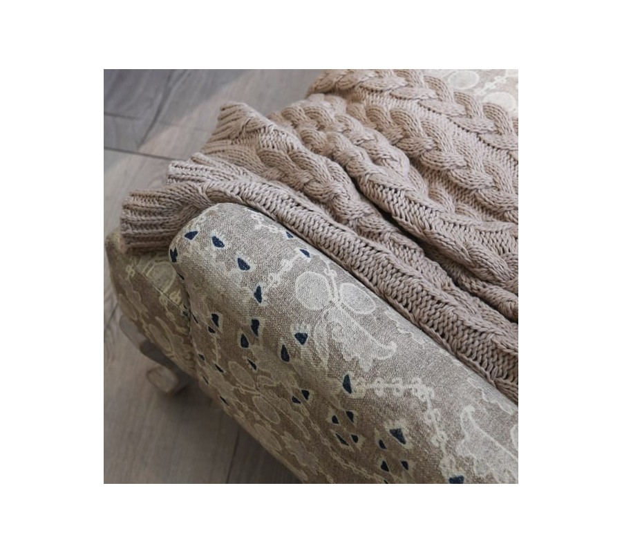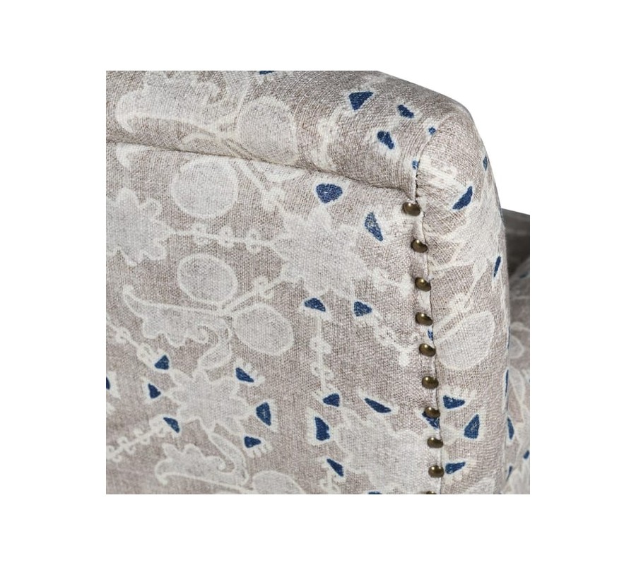 Luxusná dvojmiestna sedačka Samie má elegantný, zaoblený tvar, ktorý zdôrazňuje pohodlie a štýlovú jednoduchú siluetu. Poťah je vyrobený z kvalitnej bavlny, ktorá je príjemná na dotyk. Vzor na poťahu má orientálne motívy, s jemnými kvetinovými ornamentmi v béžových, krémových a svetlohnedých odtieňoch, doplnených drobnými modrými detailmi. Tento dizajn pridáva sedačke exkluzívny charakter.