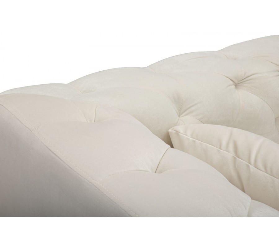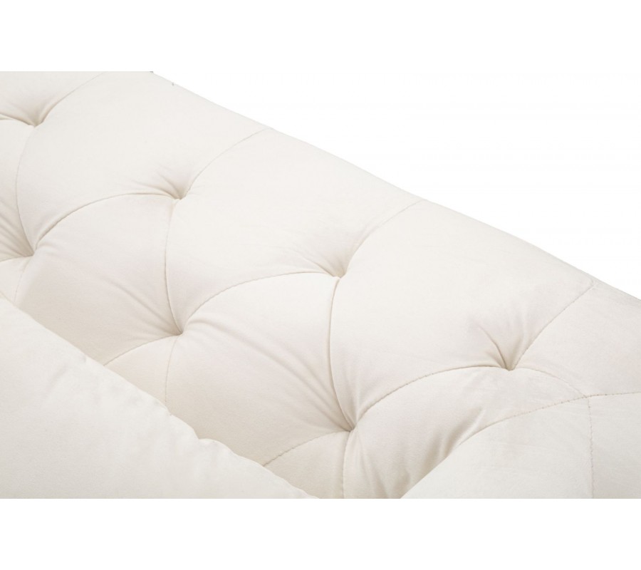 Sedadlo tvoria dva veľké čalúnené vankúše, ktoré poskytujú pohodlné sedenie a zároveň dodávajú sedačke vzdušnosť. Operadlo je bohato zdobené klasickým prešívaním v chesterfield štýle, čím podčiarkuje glamour vzhľad. Okrem sedacích vankúšov sú súčasťou aj dva menšie vankúše, ktoré zvyšujú komfort a dotvárajú harmonický dizajn.
