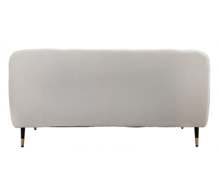 Art deco dvojmiestna čalúnená zamatová krémová sedačka Lana s čiernymi nožičkami so zlatými detailmi 146 cm