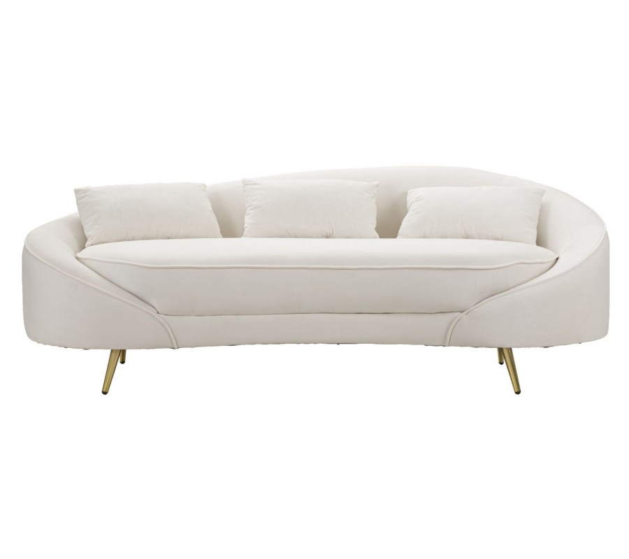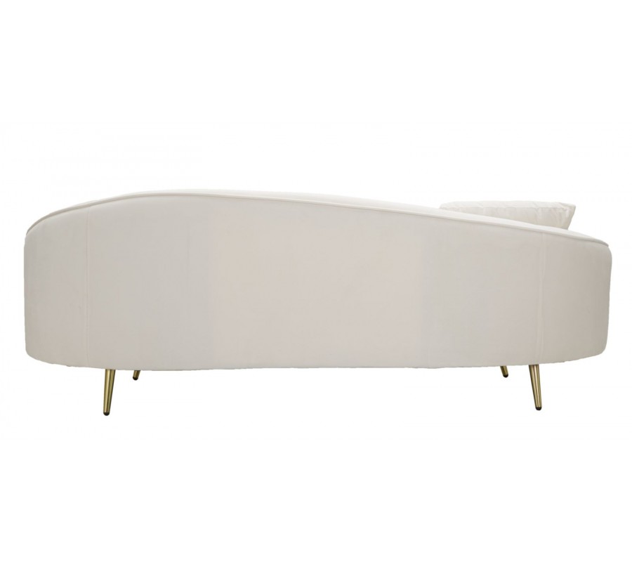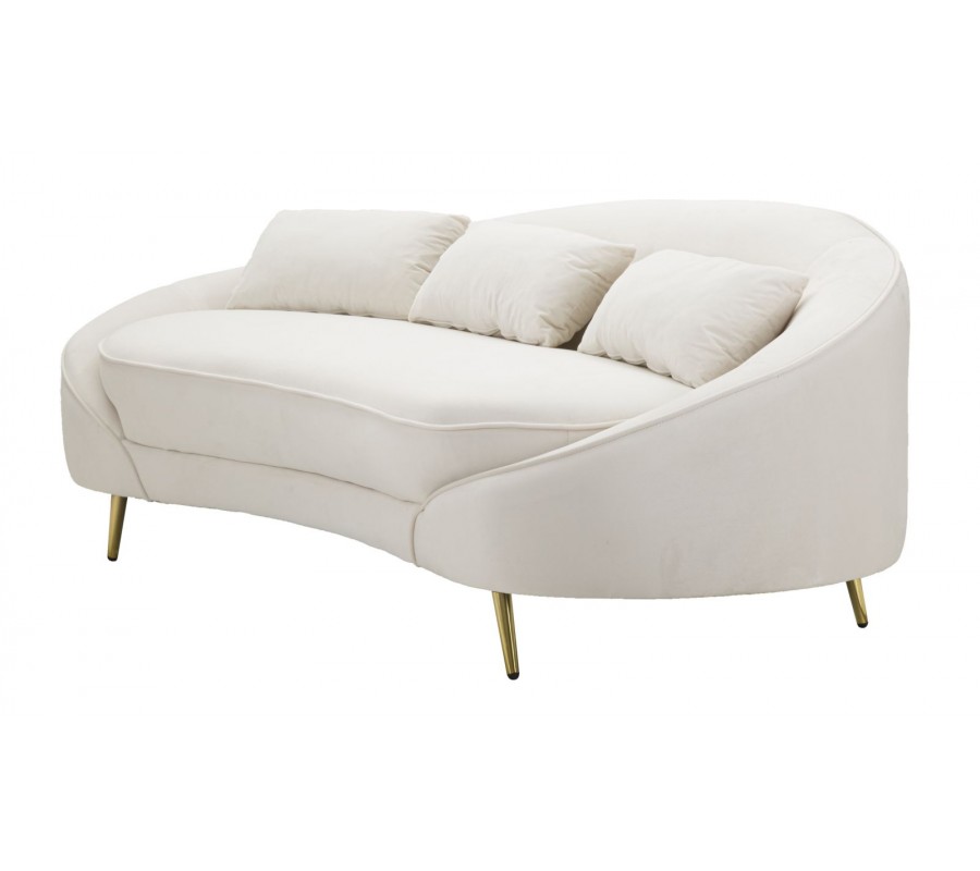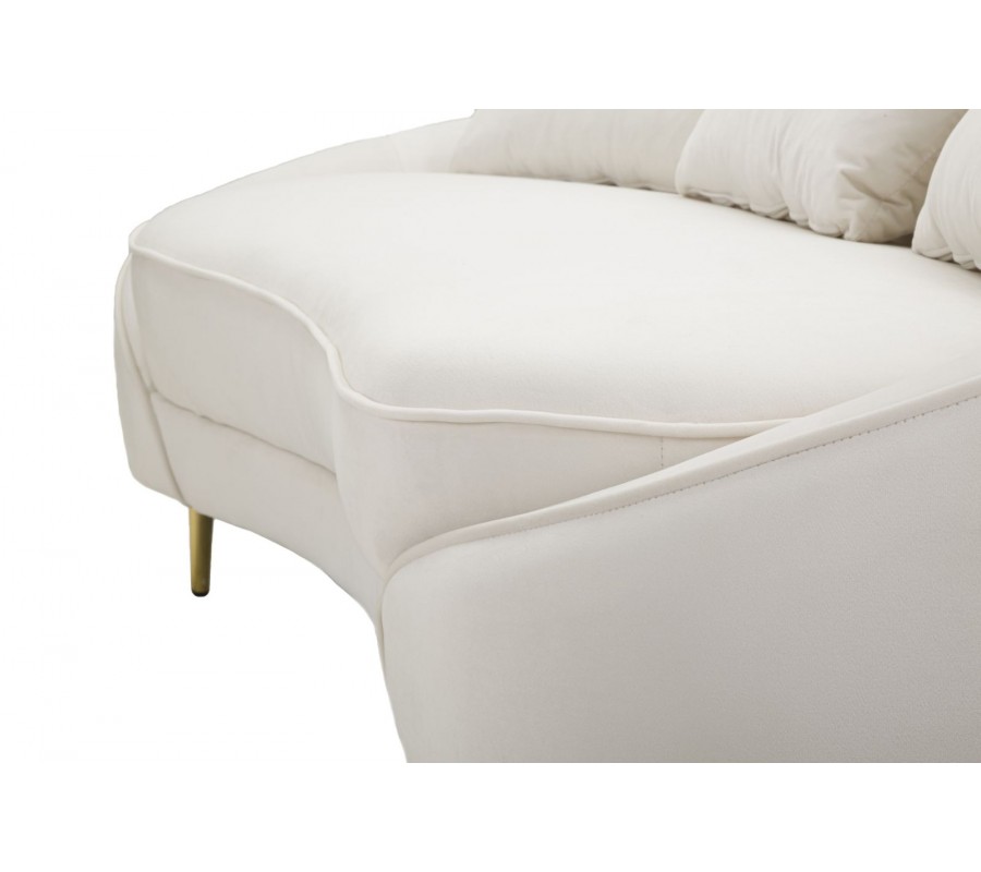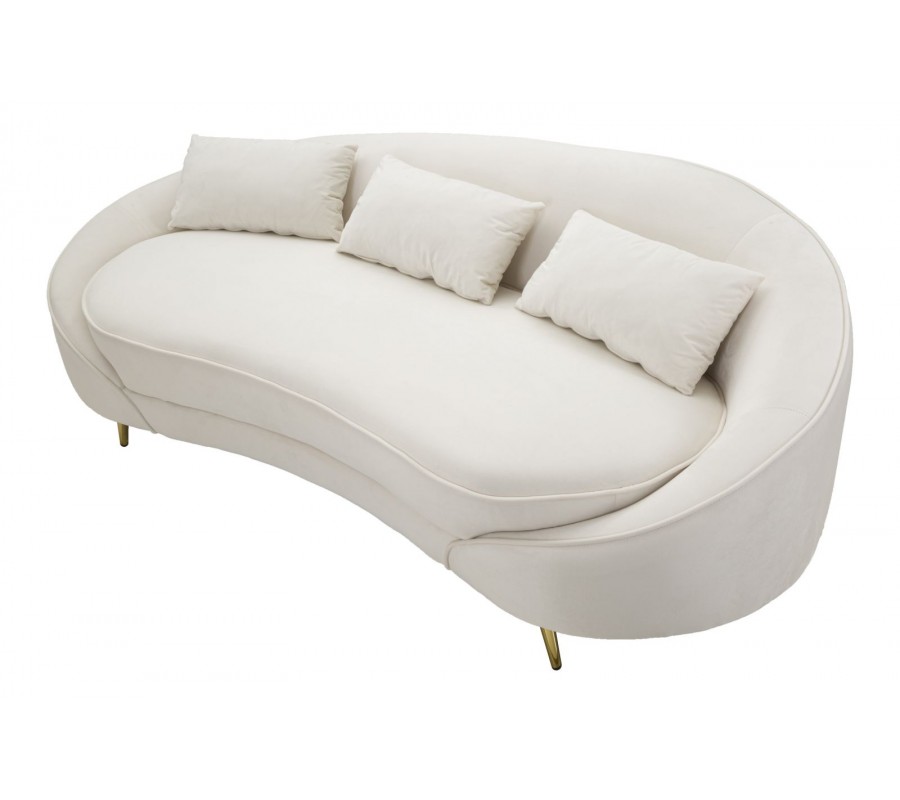 Art deco trojmiestna čalúnená oválna krémová zamatová sedačka Darian so zlatými kovovými nožičkami 185 cm