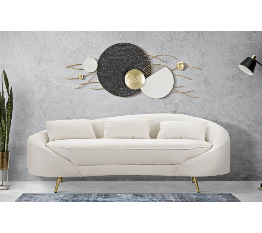 Elegantná trojmiestna sedačka Darian v art deco a glamour štýle je dokonalým spojením luxusu a moderného dizajnu. Zamatový poťah v krémovej farbe jej dodáva sofistikovaný vzhľad a zároveň pôsobí príjemne na dotyk.