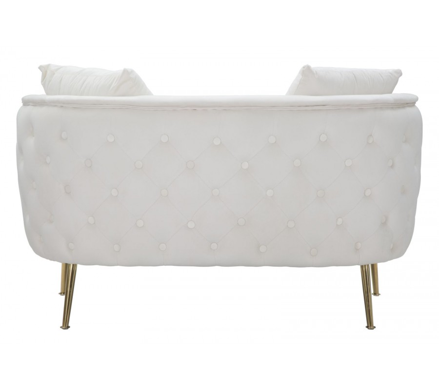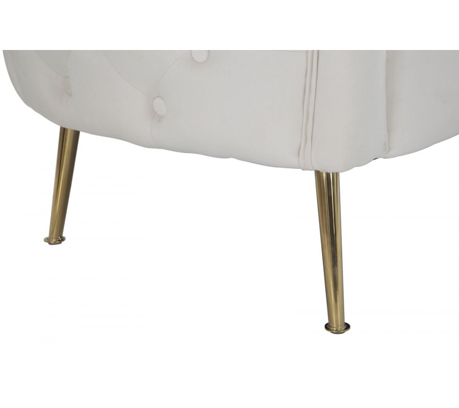 Art deco dvojmiestna obdĺžniková čalúnená zamatová prešívaná sedačka Zeran v krémovej farbe so zlatými kovovými nožičkami 127 cm