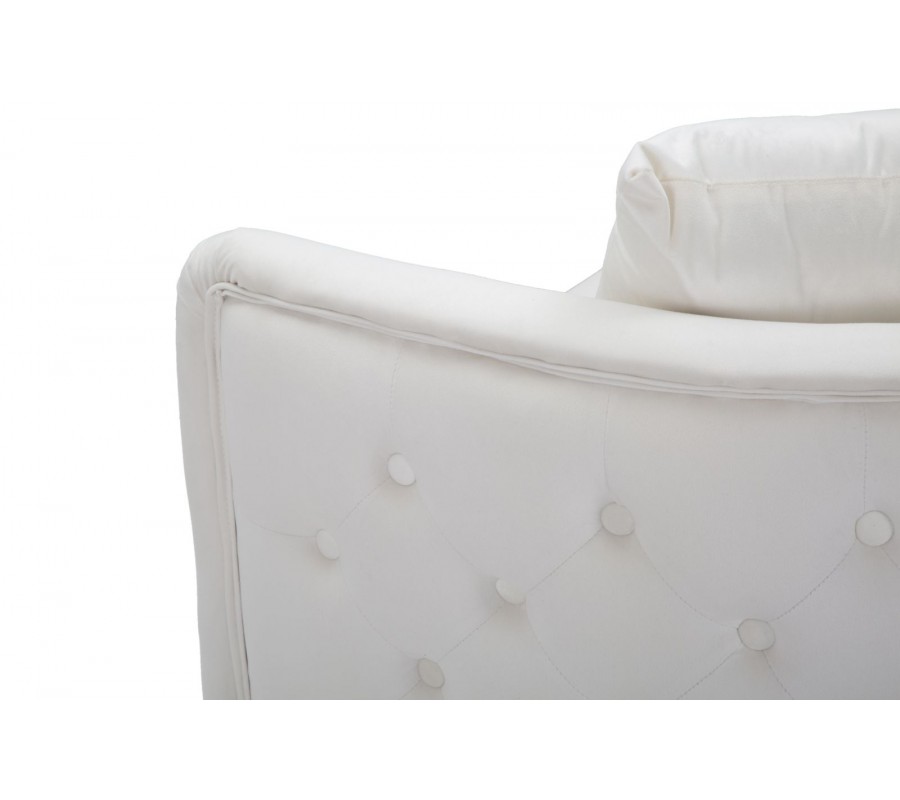 Elegantná dvojmiestna sedačka Zeran v art deco a glamour štýle je stelesnením sofistikovaného dizajnu a luxusného komfortu. Zamatový povrch v krémovej farbe jej dodáva exkluzívny vzhľad a zároveň pôsobí príjemne na dotyk.