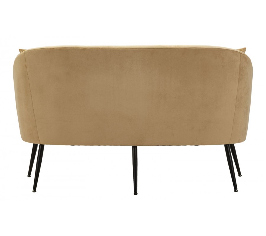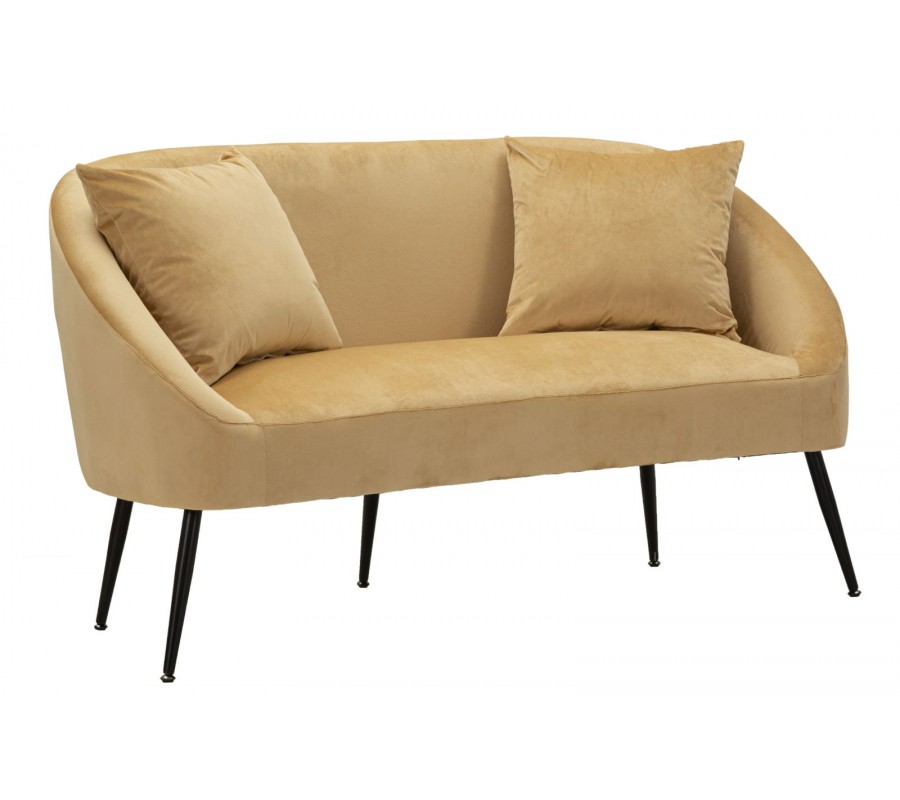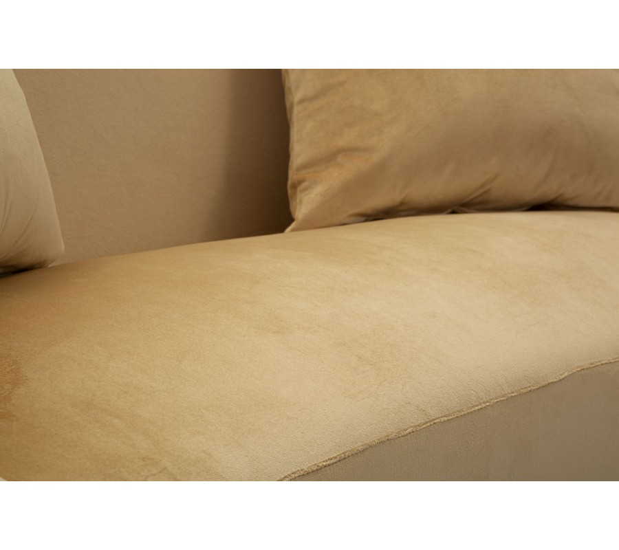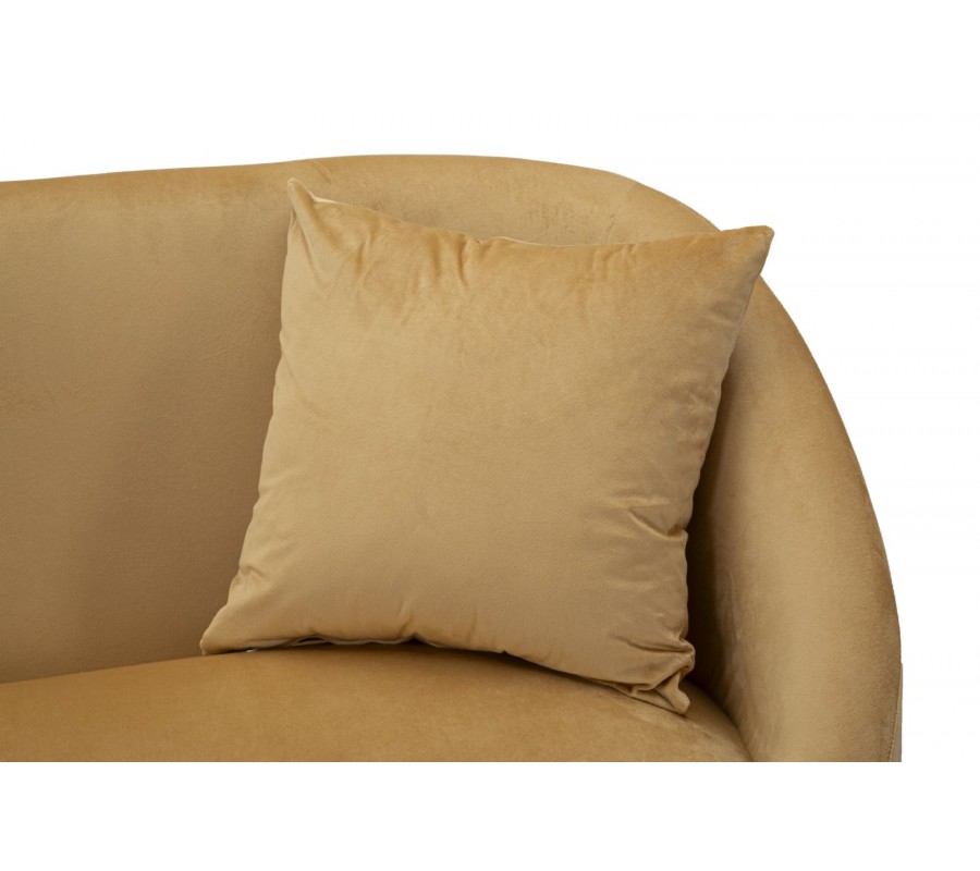 Konštrukcia sedačky je vyrobená z kvalitnej MDF dyhy a pokrytá penovou výplňou. Textilný poťah z mikrovlákna je nenáročný na údržbu a svojou okrovou žltou farbou priestor oživí. Zamatový finiš má jemný lesk a dodáva nábytku dotyk luxusu. Pohodlné opretie poskytnú dva štvorcové vankúše v rovnakom prevedení.