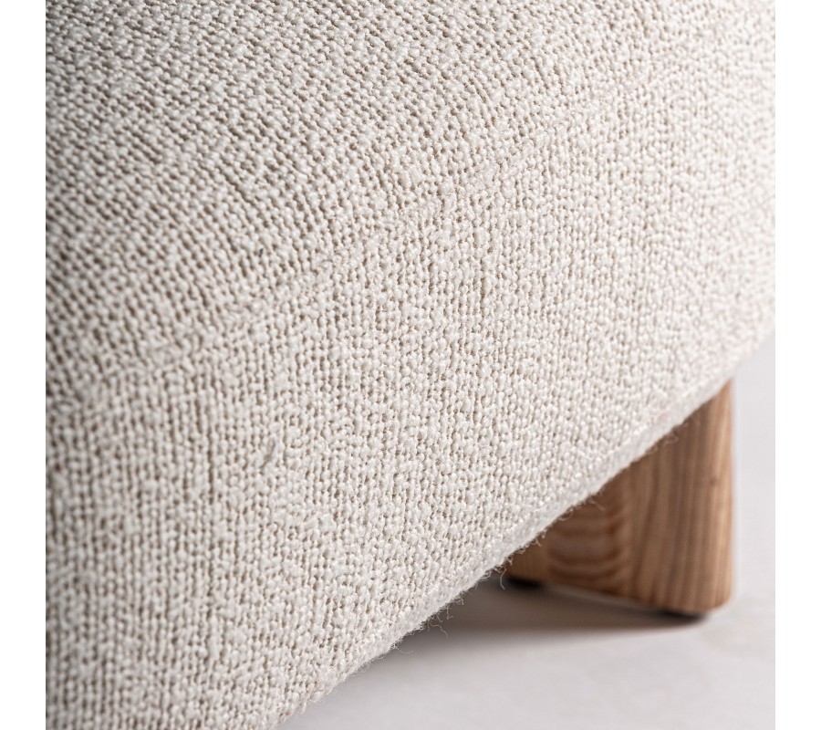 Luxusná béžová škandinávska sedačka Naria obdĺžnikového tvaru z masívneho dubového dreva s látkovým poťahom 200 cm