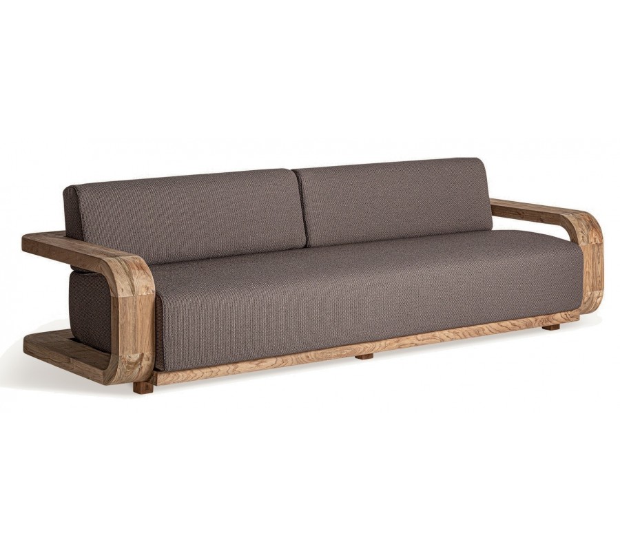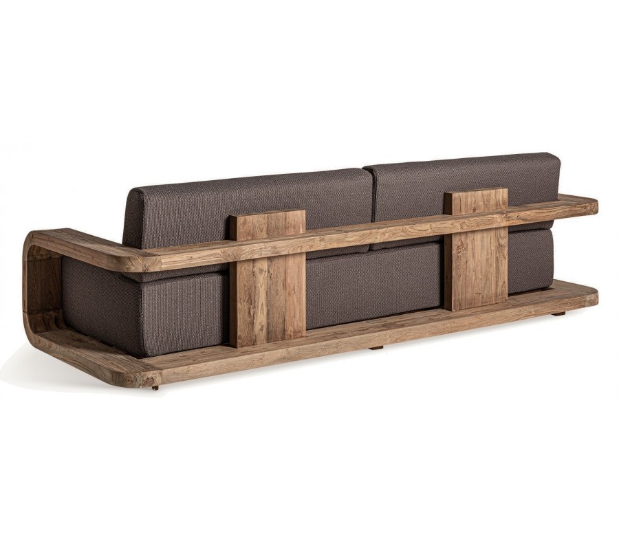Luxusná moderná vidiecka štvormiestna sedačka Koras zaujme svojou robustnou konštrukciou a zároveň elegantným prevedením. Je záhadná vďaka svojmu netradičnému dizajnu, ktorý kombinuje prírodné materiály s modernou estetikou. Čalúnenie v sivo hnedej farbe je vyrobené z recyklovaného polypropylénu, čo mu dodáva jemnú štruktúru a ekologický rozmer.